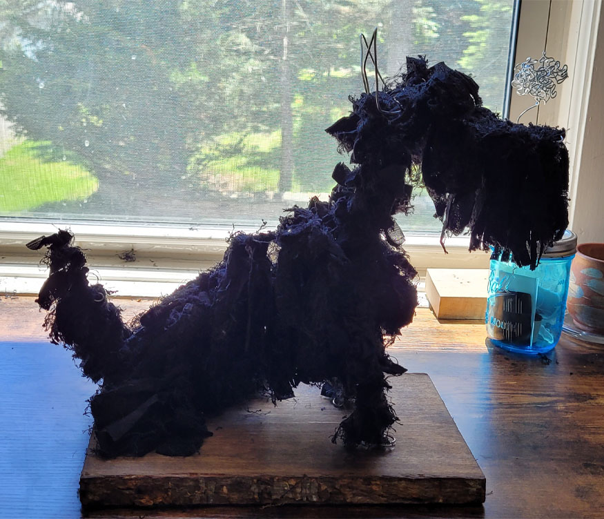 Finally, though difficult to photograph, I had a little dog sculpture. The end result was so much lighter than I predicted and I am happy with how flexible it can be. I think I was able to capture the personality of the pup I was aiming to memorialize so overall I count this as a win (and I think Dad liked it too!)