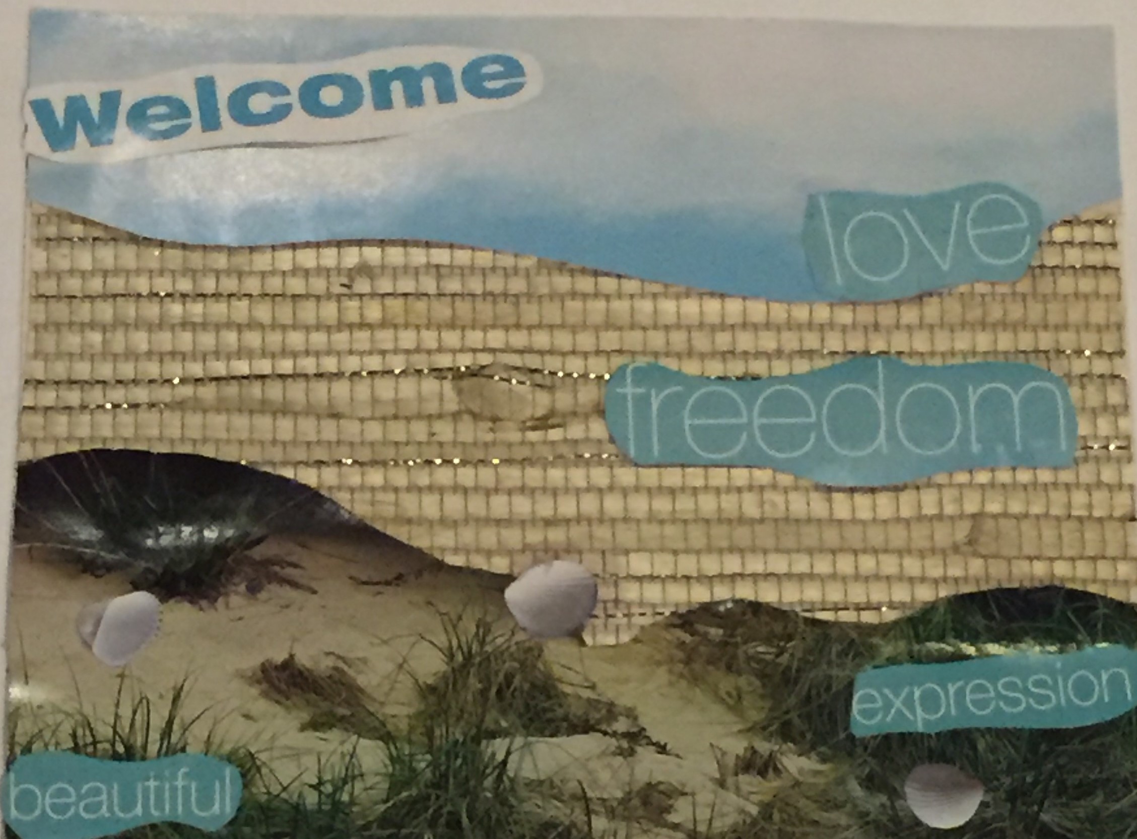 On the first day of class Eva provided us with all sorts of postcards and we were asked to pick whichever postcard appealed to us. I choose this one (below). This specific postcard really appealed to me because of the beach scenery. Before moving to Pennsylvania I lived on Long Island, where beaches are around every corner so this postcard took me back there and made me very happy!