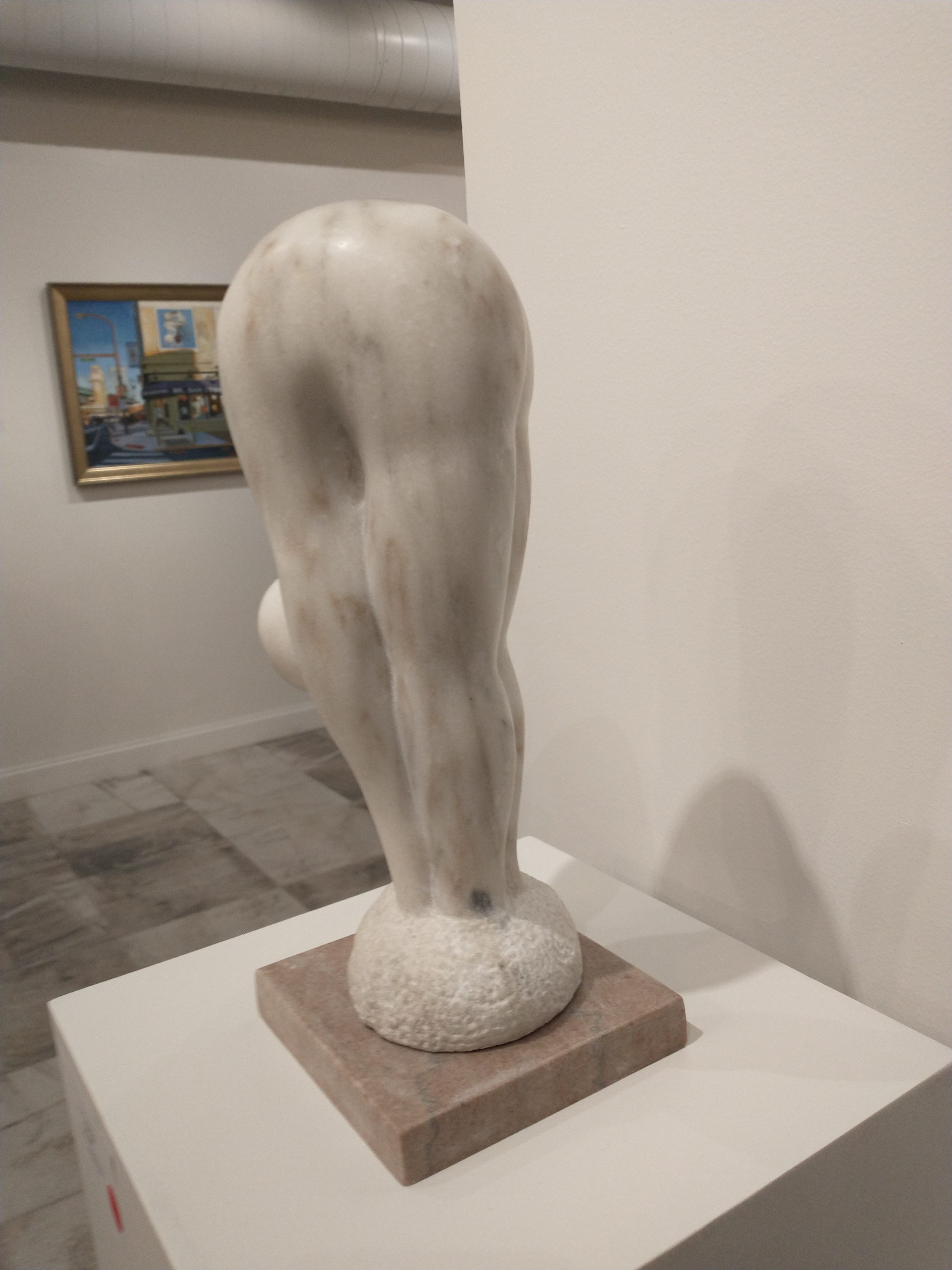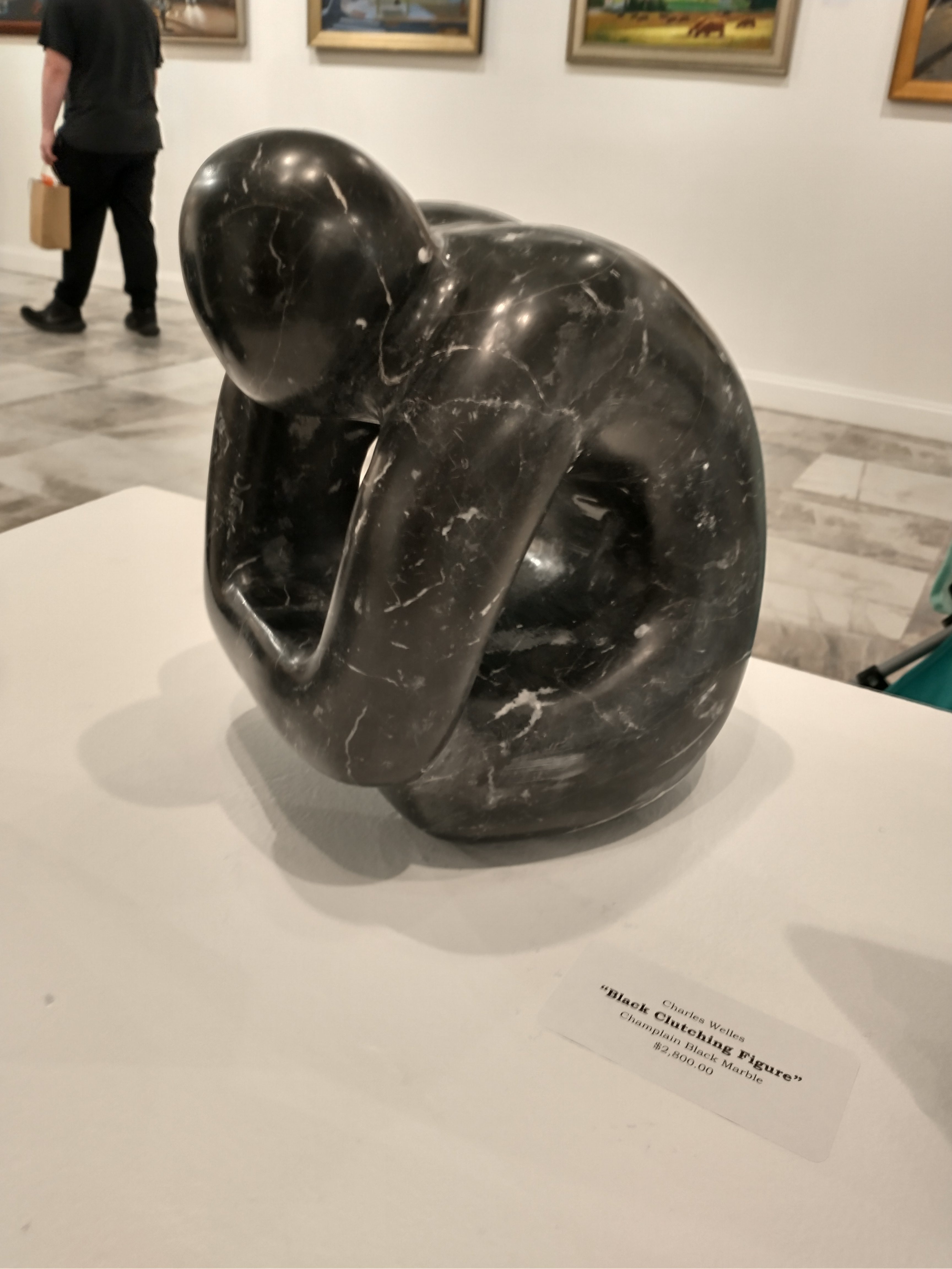Charles Welles is able to create simplistic, round marble pieces that resemble human movement and shape. Using different kinds of marble and marble colors, he was able to draw me in immediately. Each of these pieces are going for $2,800, although the white figure went for $2,200 and was sold.