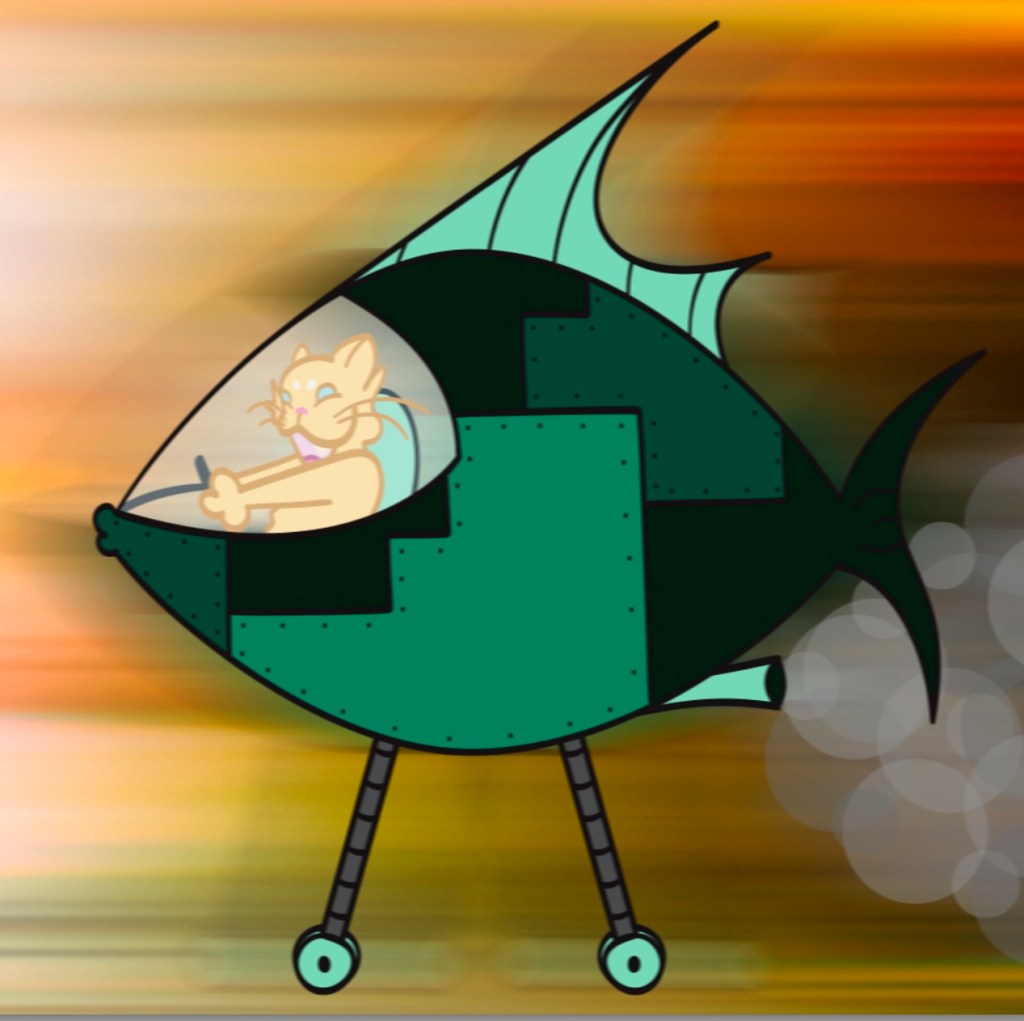 In one of my classes, I had to draw a silly racing car that matches the theme of the driver, and I already knew what I had to do. I really wanted to draw a fish car for some reason, and the most obvious choice for a fishy car is obviously a kitty driver!