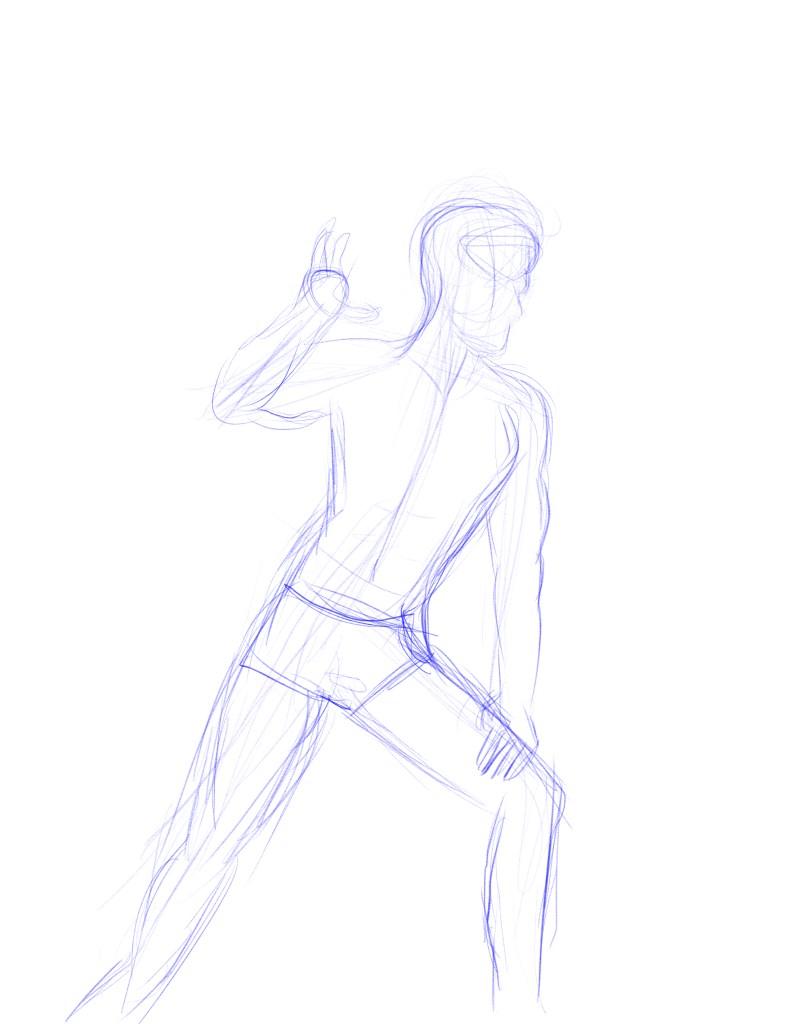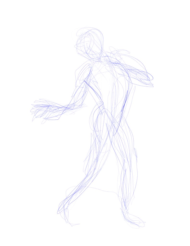 While sketching the gestures, our professor told us to focus on three major things. The line of motion, position of weight, and negative space.