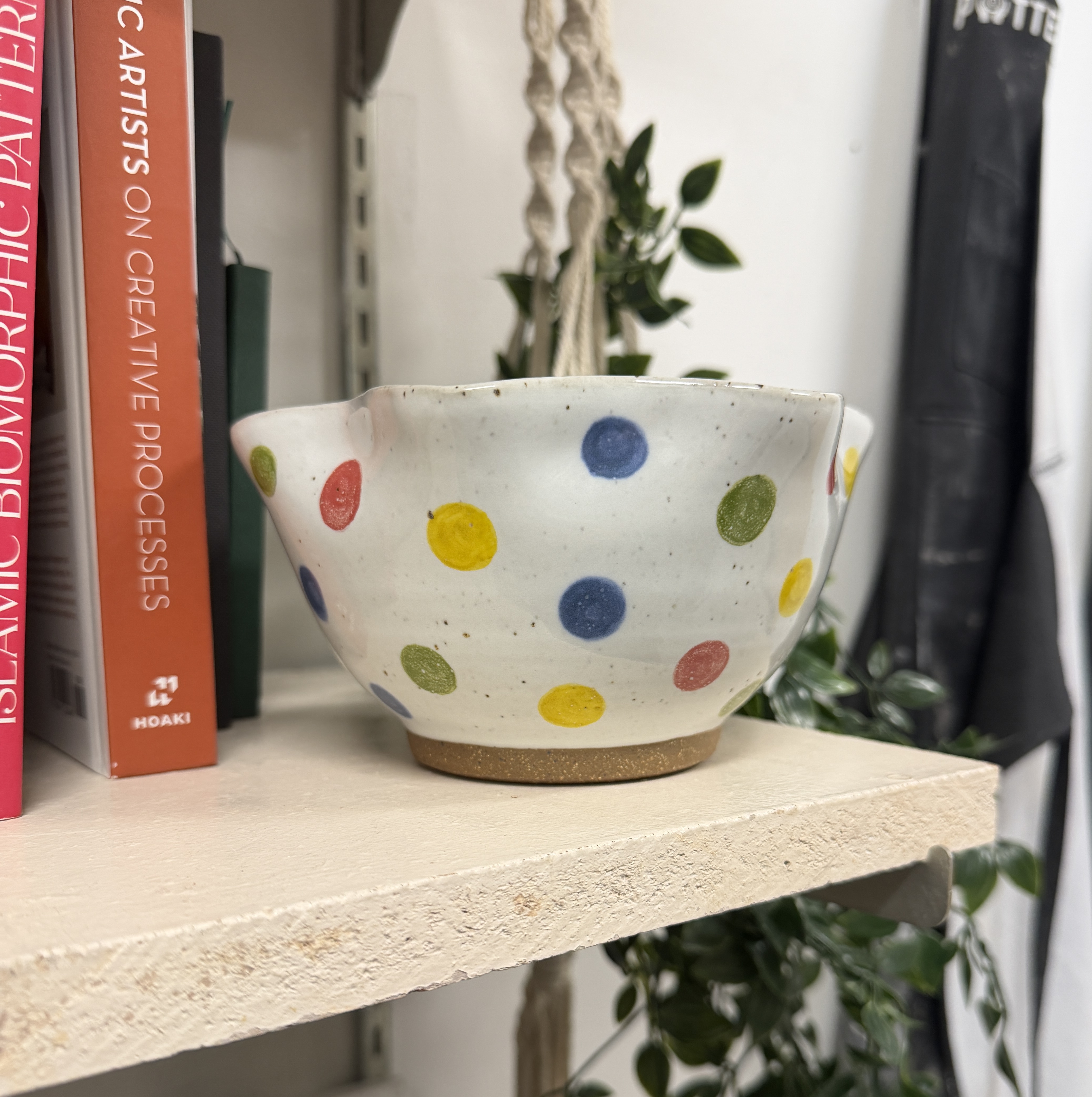 I glazed one and fired it first to confirm the colors were correct and to have a result for my customer to approve before continuing. I’m glad I did that because there were a couple of changes I wanted to make for the rest of the bowls! Anyway, that’s the only one that’s completed, and I have at least 7 or 8 more to glaze. They have been taking a lot longer than I expected, but after seeing the first of the larger bowls come out of the glaze kiln, I think it will be worth it!