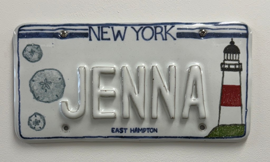 This license plate is absolutely adorable, and I’m so glad I made it. The only reason I made it was that we used it as a nameplate for the ceramic student studios during the senior show. Such a smart idea from one of my studio friends, and they all turned out great. For mine, I wanted it to look like a New York license plate because that’s where I’m from, but I honestly didn’t have much time. So, I did the outline and a font similar to the real thing, then added the lighthouses and sand dollars to make it my own. I think it turned out so cute, and I would love to make more of these in the future!