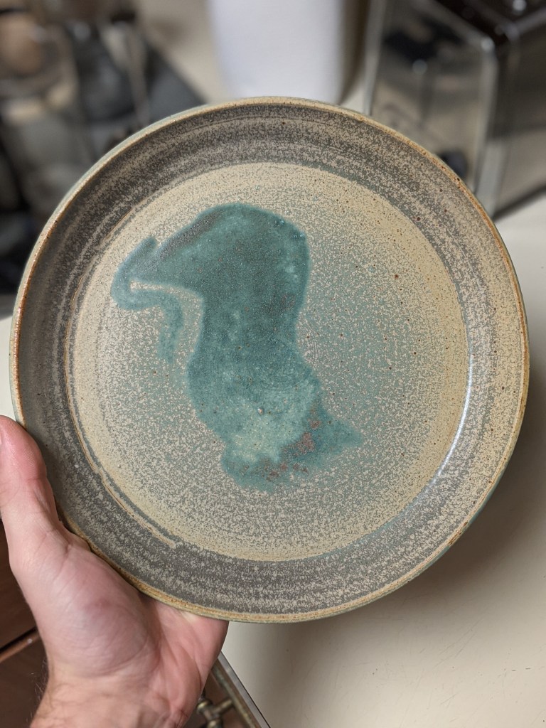 This was the end look of an 8 set of plates I made earlier this year. A rustic / homey style glaze ends up making them seem more suited for a cabin then fine dining but the plate itself could have been for any purpose. If you imagine them being glazed in a super clean-cut style with maybe white and black then they’d have a much more modern look to them. Just goes to show how the surface of something can really change its appearance.