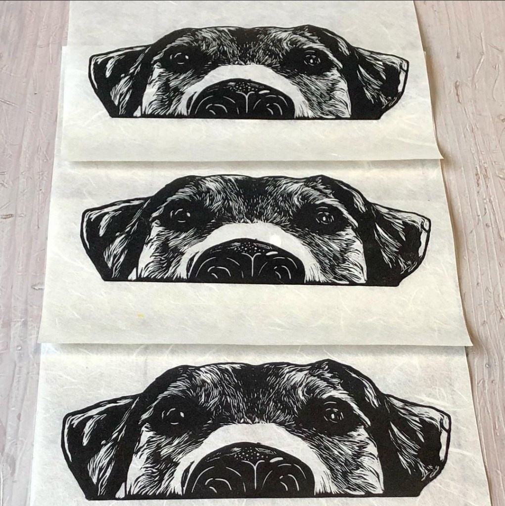 The second linocut to look at is cat motif. This cat is a pet of a commissioner for this artist and I really like the realism of the cat and the pop of pink color. This is a very fun and cute piece of art that probably means a lot for the person who had this commissioned. That’s one of the reasons I really like art it brings people together. Art is so board it’s capabilities are limitless and so much good can come from it.