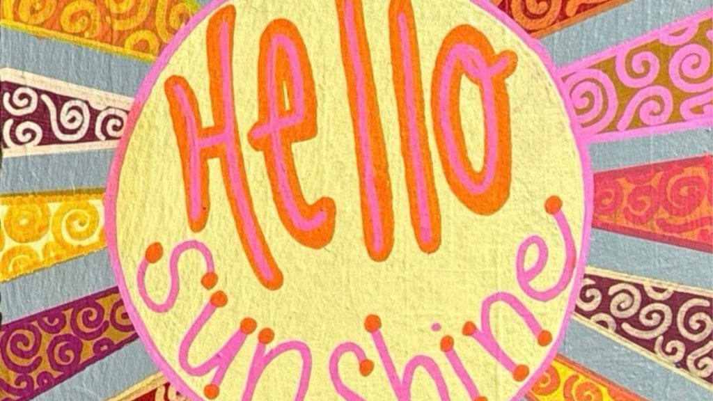 After that, I picked my colors—warmer tones for the sun to contrast the cooler-toned gray background. Once the rays were dry, I grabbed my all-time favorite writing utensil, posca paint markers, to add swirly designs to each ray. I outlined them for definition and then moved on to the scariest step: writing “hello sunshine.” I needed my handwriting to be just right. To my relief, the letters came out better than I expected!