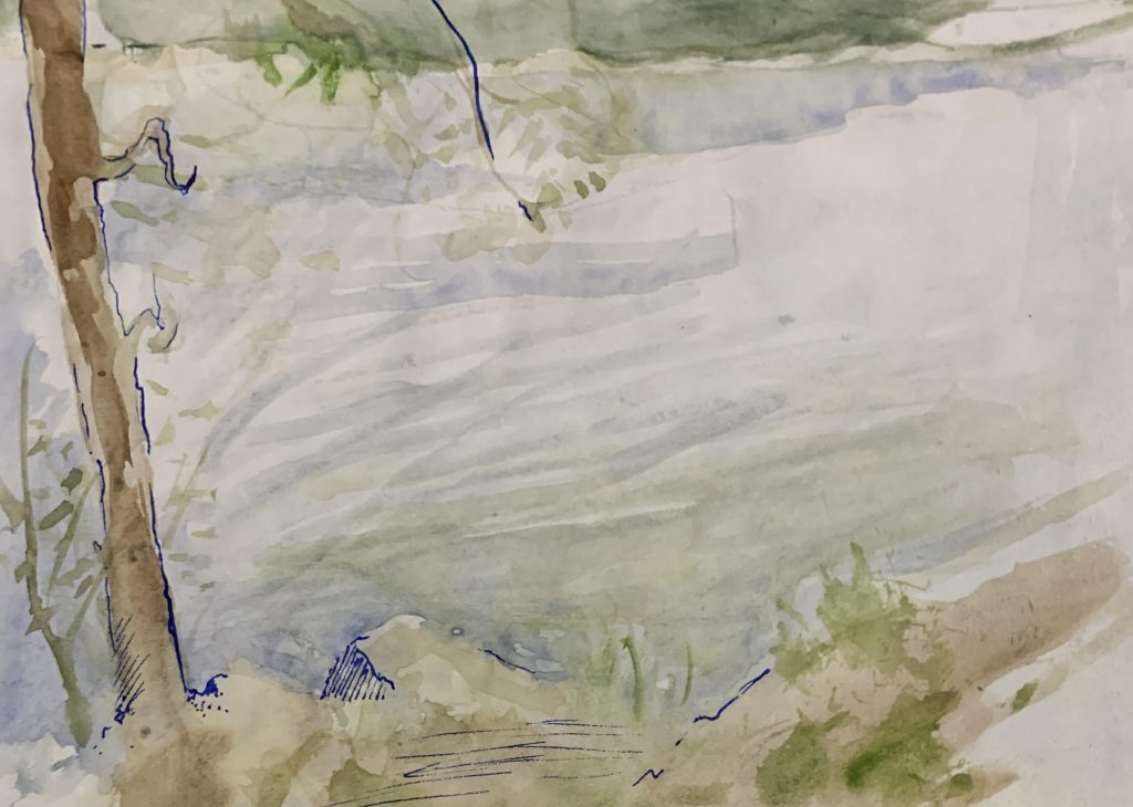 So as the weather has been so nice recently, I got to go out and do some plein air out in the park with watercolor. I don’t have a huge set of colors so I make do with primaries which helps me get better at mixing colors. When you’re out there painting, you could really have trouble feeling satisfied with whats being put on the page, that’s what may have happened a lot here. But going back into the studio, I really am satisfied with what I had been able to do.