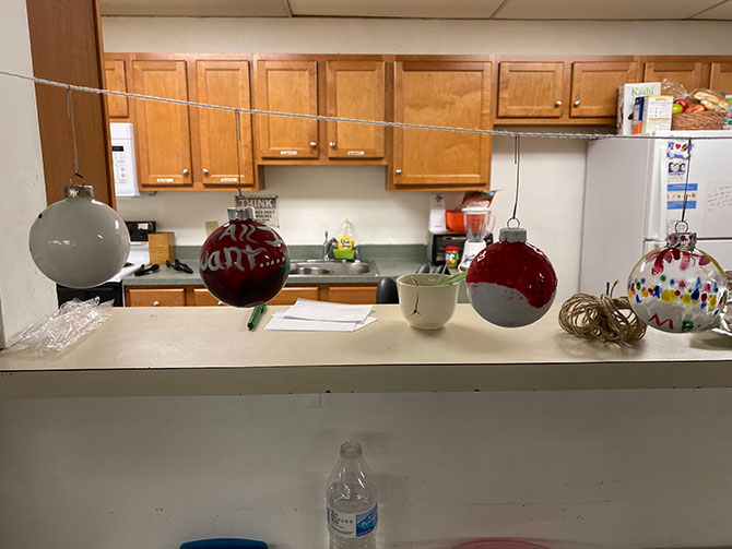 As the holiday season is just getting started, we decided to make holiday ornaments as a final, relaxing goodbye. The women really liked this project. It gave them a place to think about and what they enjoy about the holidays while also allowing them to enjoy creating. They really enjoy doing tactile tasks that they can take with them and show their loved ones, so the holiday ornaments were perfect for this purpose.