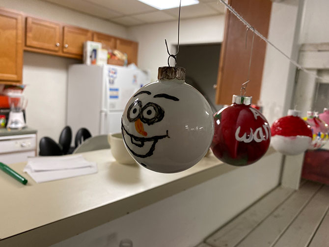 For example, there was one woman in particular who always said that she wasn’t an artist. As we worked with her over time, she slowly started to bring up the idea that she needed to give art another shot. She ended up making a very beautiful, pink and blue ornament. Another woman there was making ornaments for her children and ended up painting a tree and gifts that she would want to give her children. One woman enjoyed the directive so much that she ended up making four different ornaments that depicted different characters from a variety of christmas movies and films. Overall, the women really enjoyed the directive and it was definitely a good note to end on.