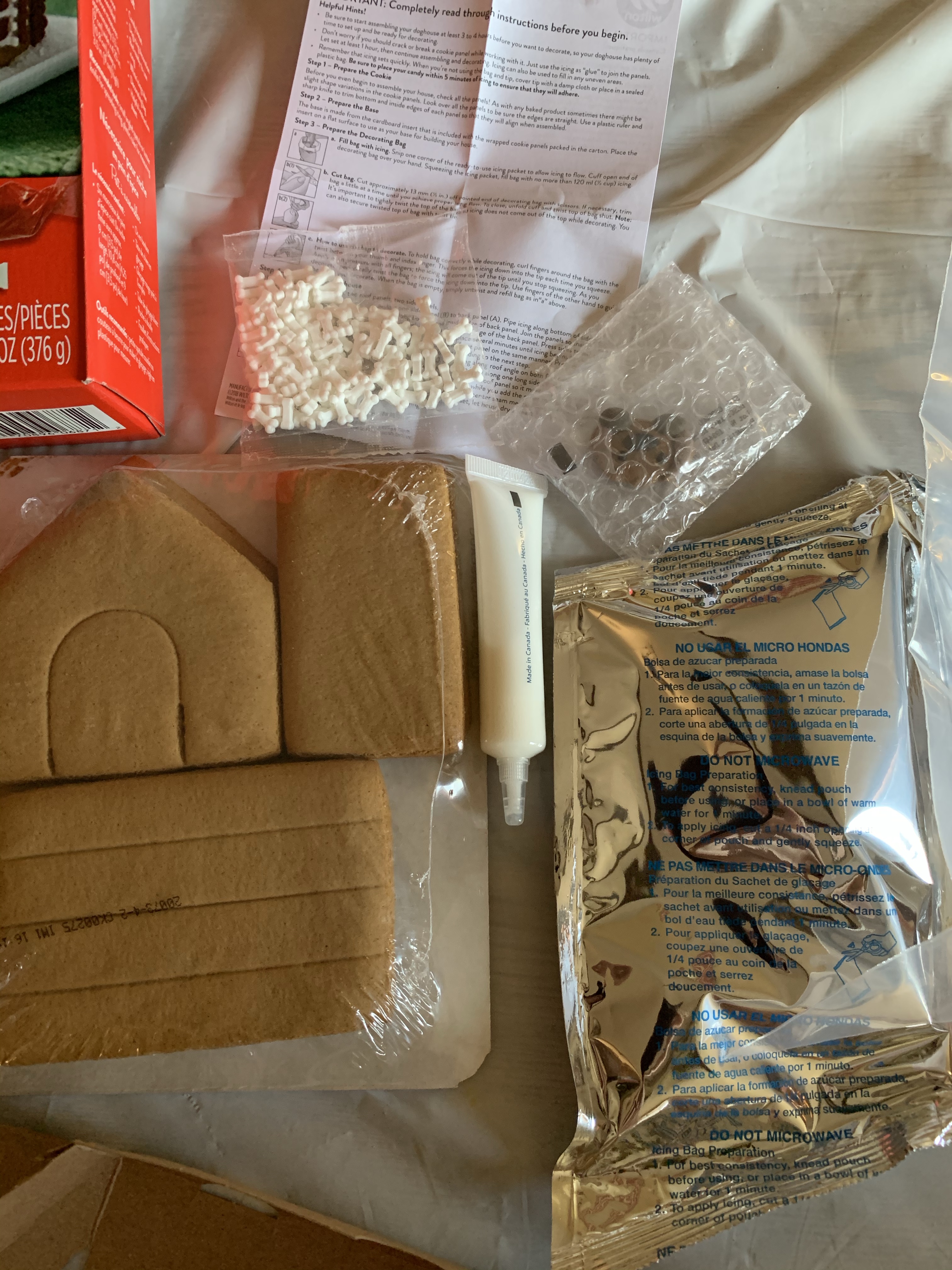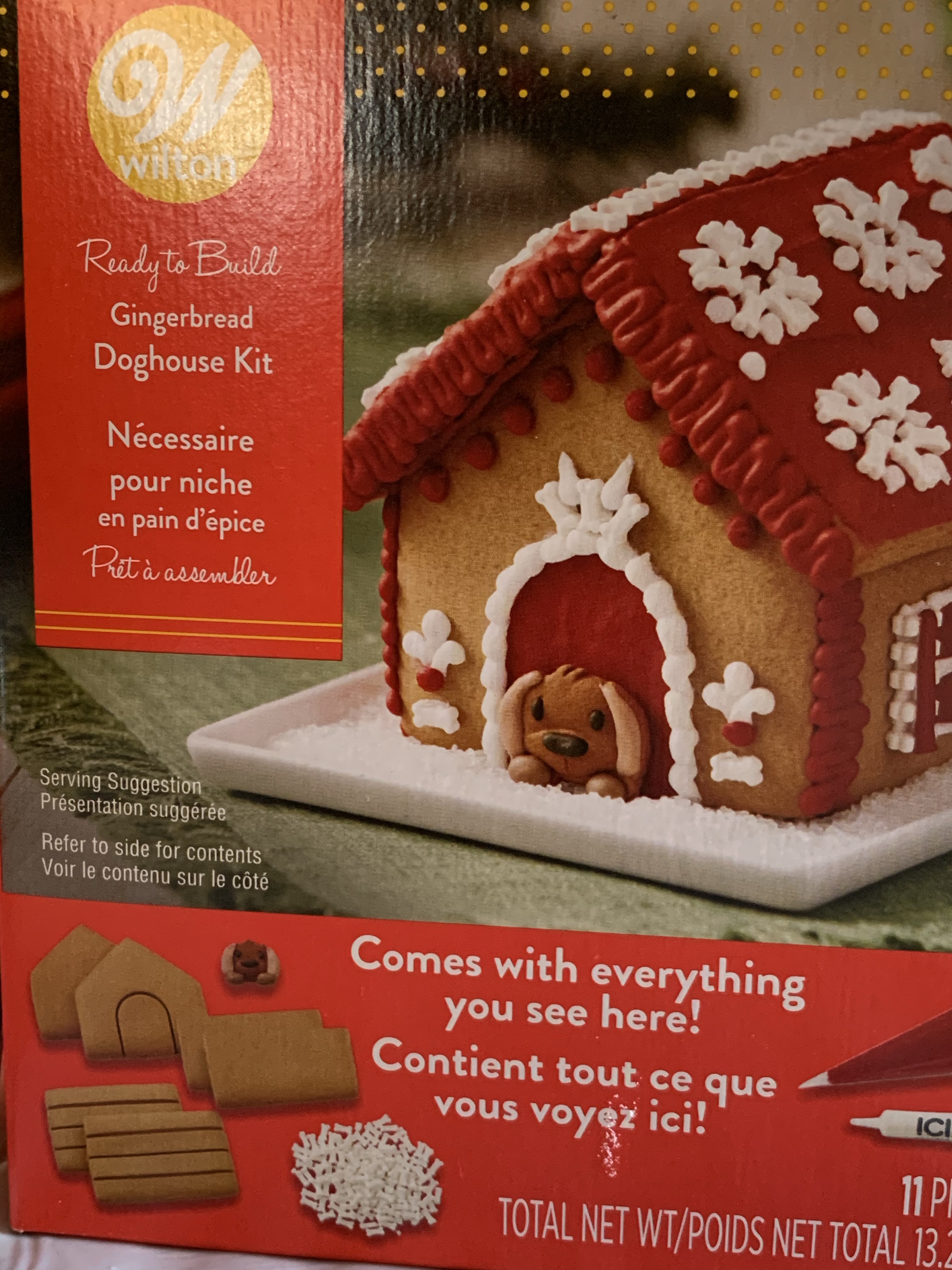 To start our holiday spirit we constructed ginger bread dog houses. I was just a helper for this whole project. I forgot how patient you have to be to construct them, luckily for my family none of the tumbled over! I took pictures before the construction of the houses were completed, but I totally forgot to take pictures of our completed masterpieces.