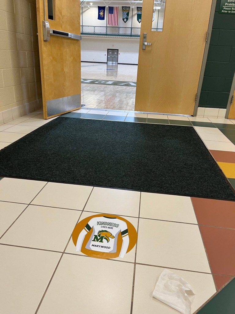 Outside of the design program at Marywood, I can say that the athletics department here has been awesome to work with. Being an athlete, I was able to make graphics for the program and my teammates, making senior posters and social media designs. I was able to tailor some projects for our social impact class to work with athletics and put floor decals in the gym stating, “Kindness Lives Here.”