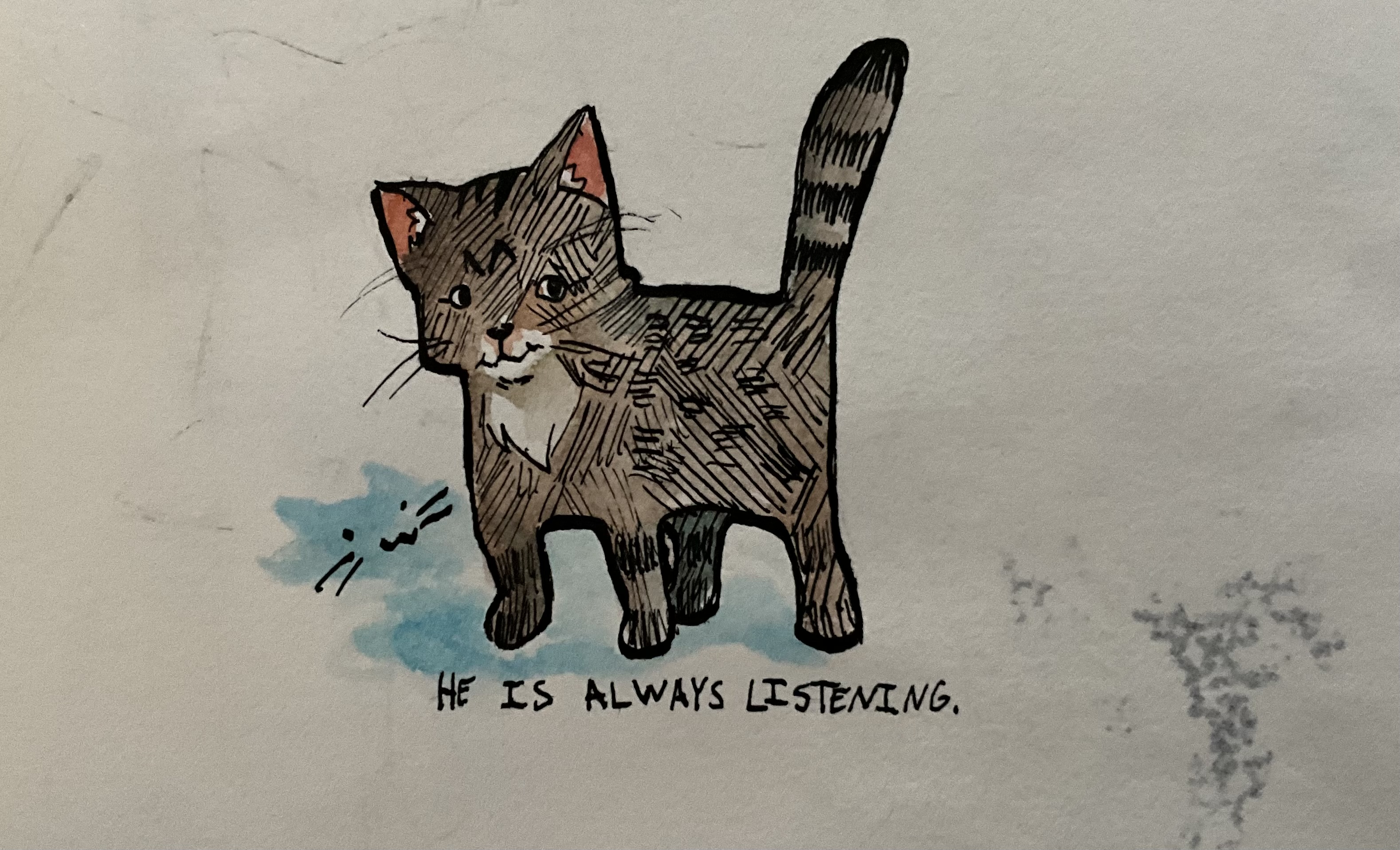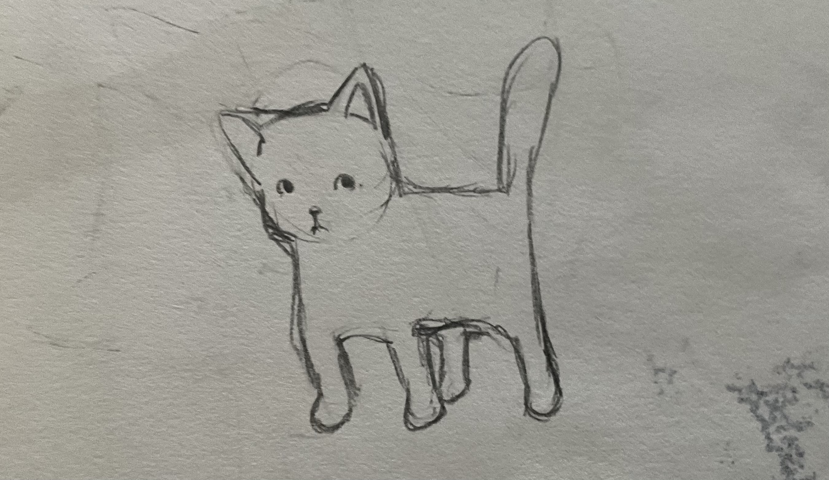 I, of course, always start with a sketch! Our subject today is once again a cute little cat (Heavily inspired by my cat!).