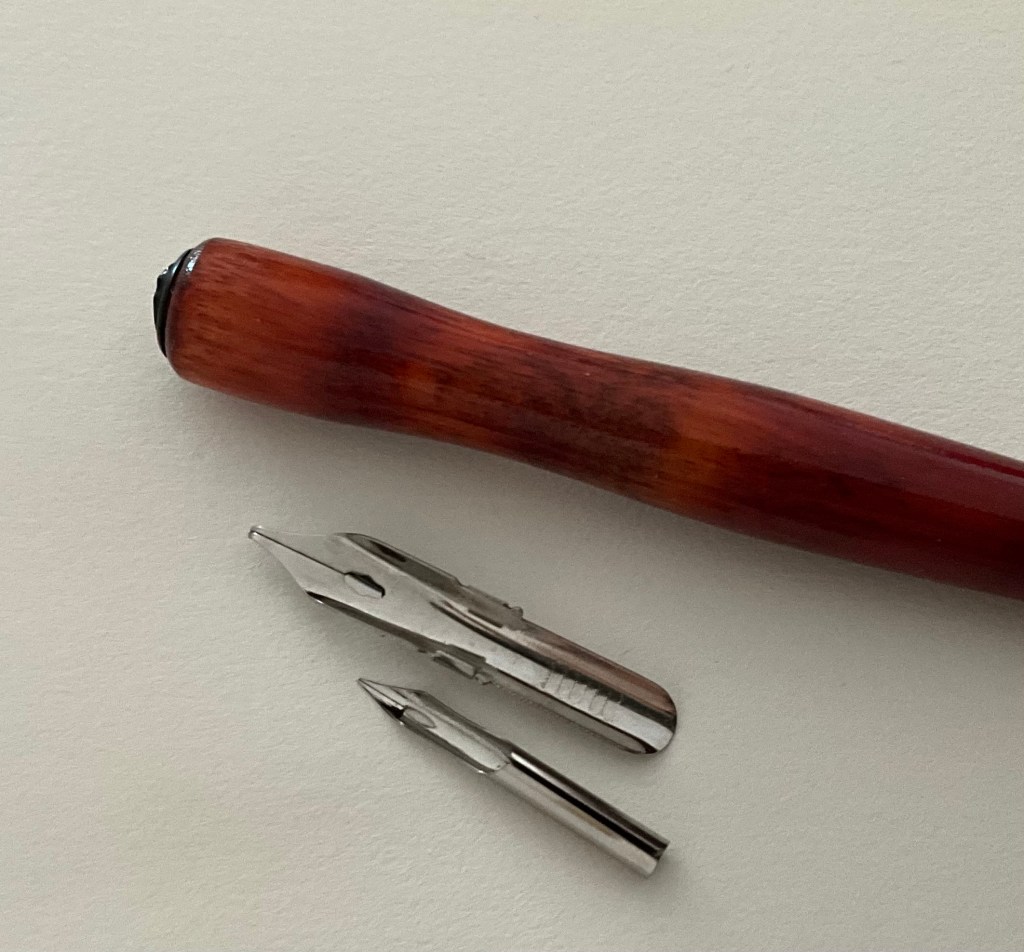 Recently I have started using a dip pen and waterproof ink so I’m still getting used to using the pen and I used the thinnest nibs I had for the line art and hatching. For the hatching I used less ink on my pen nib to achieve thinner lines to shade the grey parts of the cat, and used a normal amount of ink for the spots and stripes for the darker areas.