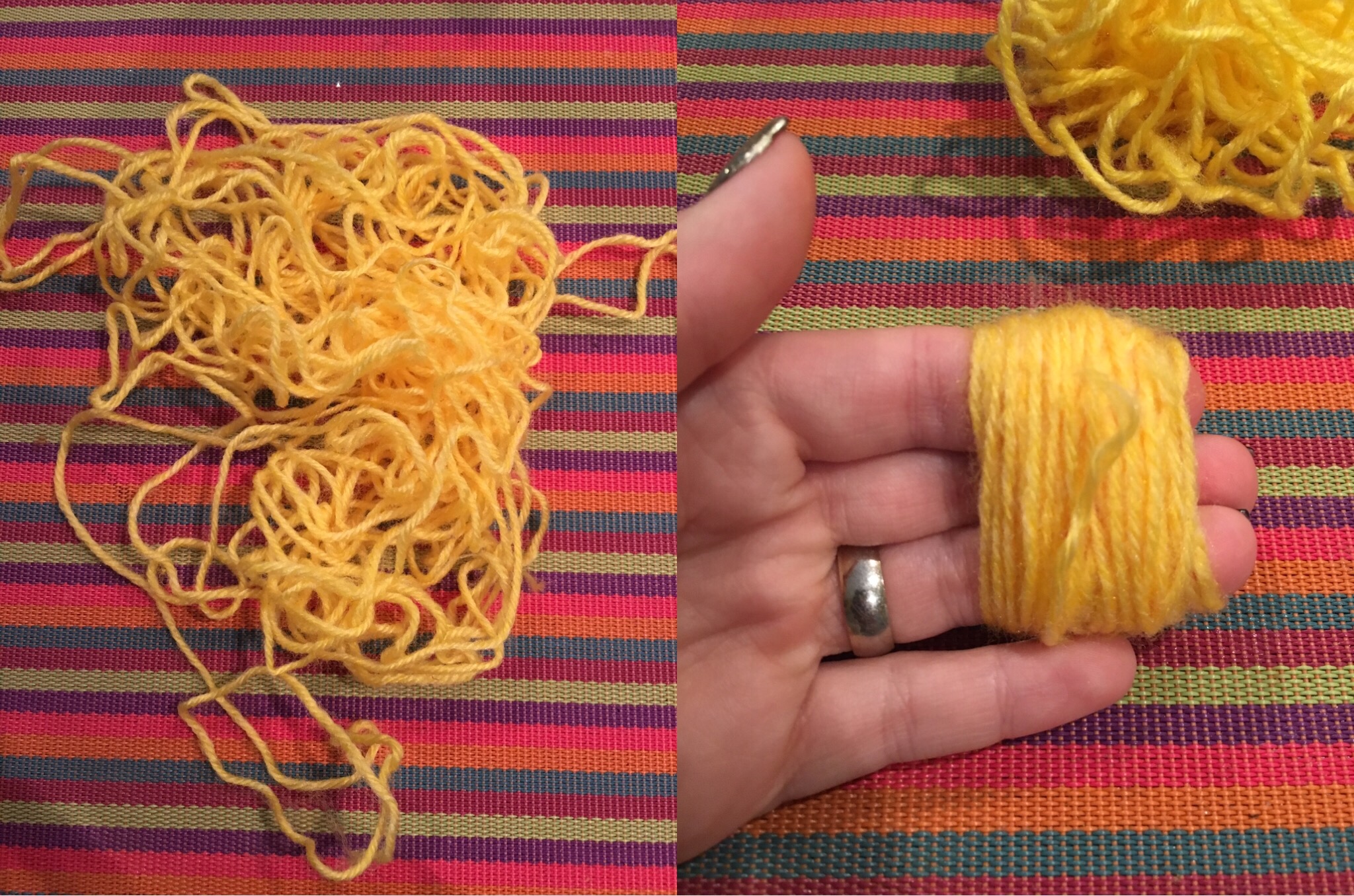 After you’ve wrapped the material around your finders, you’re going to take an extra piece of yarn or string and tie it horizontally around the bundle. If you’re using ribbon, use a piece of seeing string to tie it together. Make sure to triple knot it so that it doesn’t come undone. The tighter you tie the bundle together the better.