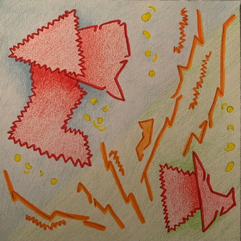 Finally, for one of the last projects that I am doing this semester, I have created a piece based on an instrumental song for my conceptual design course. The song that I have chosen is “7 Nation Army” by Pete Cottrell. This has been a challenging project because it is difficult at first to determine what shapes and lines I was going to use because this is the first time that I have used music directly to create art. After listening to the song a few times I eventually came up with an idea. I decided to use some jagged lines, shapes, and circle figures. I also chose warm colors for the shapes and lines because the song screams warmth to me but I did notice some cooler tones which is what led me to color the background blue and orange.