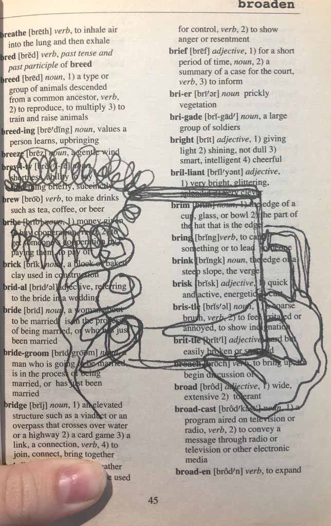 I always struggle to pick a theme because I do not like being constrained by any means with my art work, so I found the perfect solution to my worries about committing to a theme: I turned a dictionary into a sketchbook!