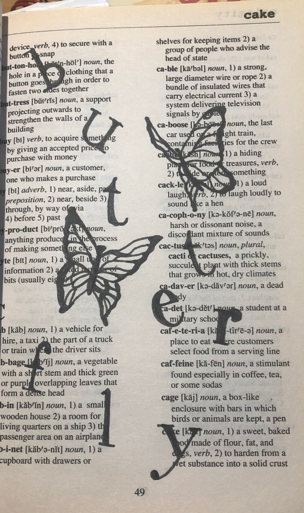 Plus, I didn’t feel constrained by a specific theme, whatever page I opened to in the dictionary gave me about twenty words to choose from every day.