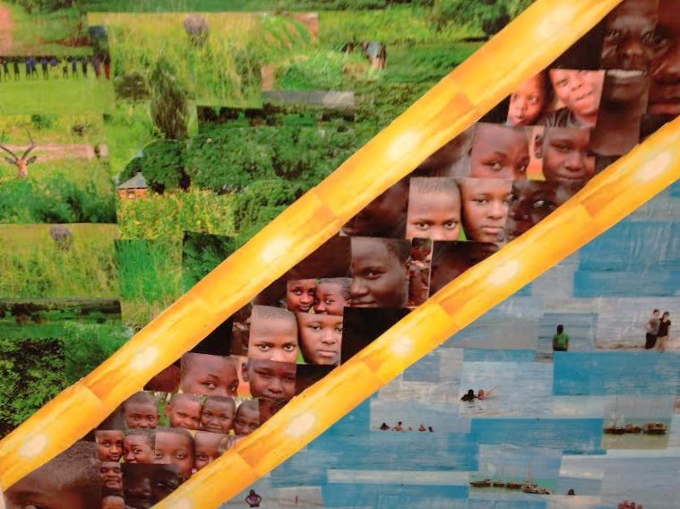 My first piece incorporated a personal touch using actual photos from our trip in a collage. The experience of collaging was even personal to myself because of the many uses of collage in art therapy. It is an extremely useful and powerful process within the field. In this collage I purposely placed images based on color to have the ending arrangement resemble the Tanzanian flag. To connect the piece further, the meaning of the colors in each section of the flag also corresponded to the content of the pictures. The green symbolizing the land of Tanzania was composed of pictures taken of the fields we rode through. The yellow representing the minerals of the land were close up pictures of the sunsets we saw everyday. The blue representing the Indian Ocean incorporated the pictures taken during our visit to the Indian ocean in which if you look closely you can see myself and team members swimming in that section of the flag. The black representing the Swahili people are made of the many pictures we took of our friends we had met and formed relationships with in Tanzania.