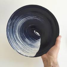 Recently I was on instagram and I follow and artist named Tom Kemp. He is a rather well known artist, and he uses a very large brush with a type of black “ink” and just does one movement to make a design. They are simple but extremely beautiful. I was inspired my him. I want to make plates and keep them simple, but with line rather than brush work.