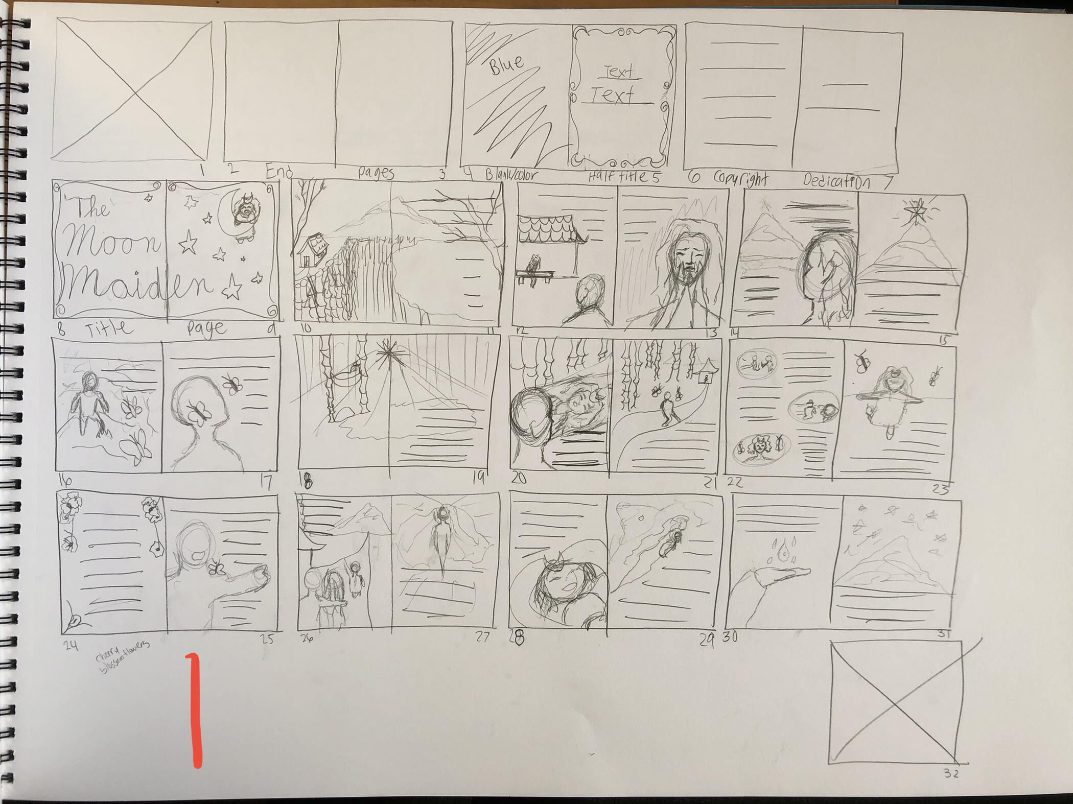 After this, we created two versions of a storyboard for how the story would play out and I like the first one that I did because I believe I paced it a little better than the second one because I was in a rush to get the second one done before the deadline. The lines are gaps for where the words are going to go. In general, I didn’t put much detail into the faces because I am going to do that later on.