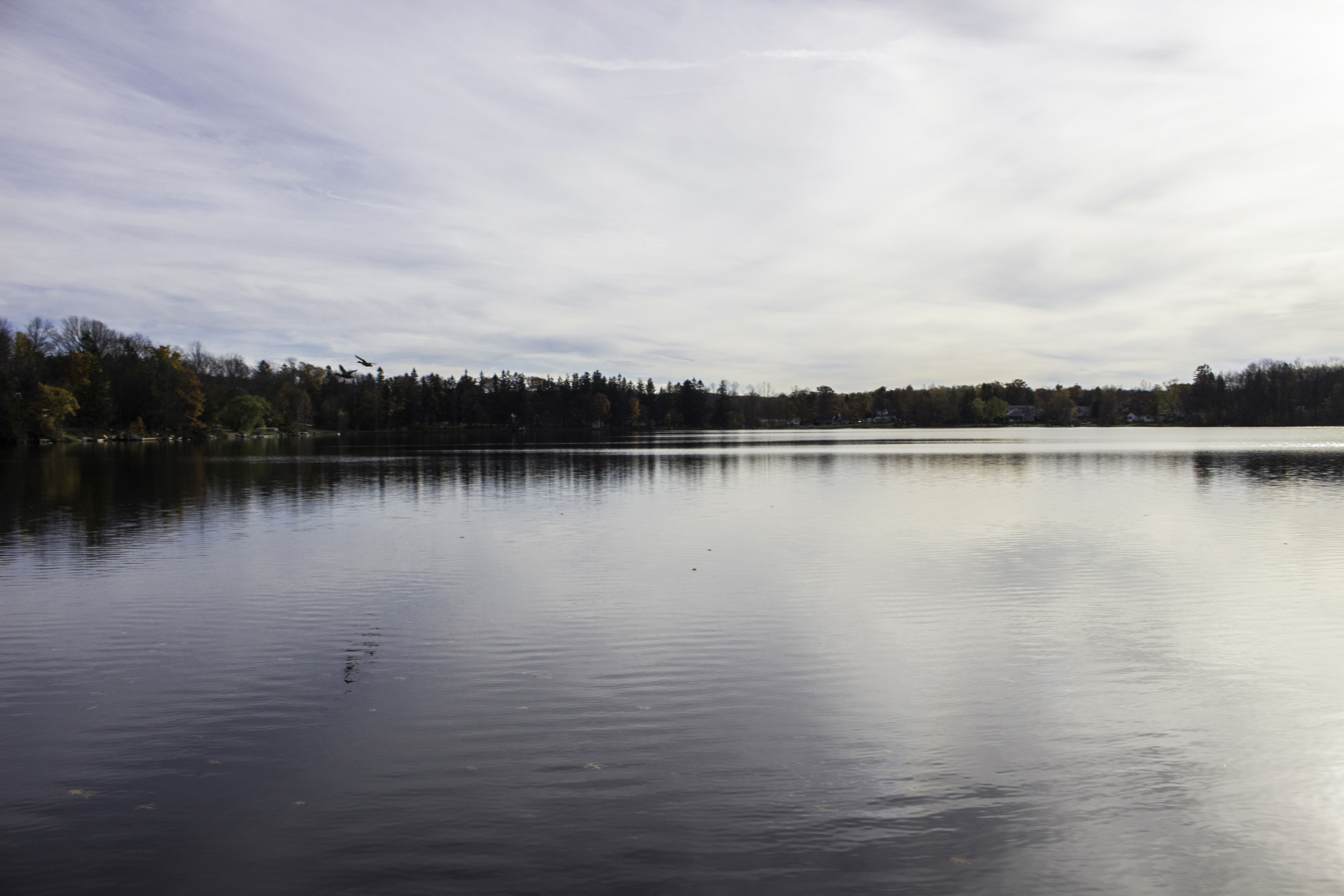 One type of bird that I was able to photograph was no other than your good ole goose. The goose was surprisingly by itself, which seemed really odd to me because geese are usually always together. Though when he was out of the water, his one leg looked injured so maybe that was the reason for him being alone. When I got closer to him, praying that he didn’t attack me, he flew off into the lake. I was able to take a photograph of him just landing in the water. I felt better knowing his wings weren’t injured. The second type of bird I photographed were two little ducks. In this photograph I was able to photograph them flying together over a lake, even though you have to search for them in the photograph.