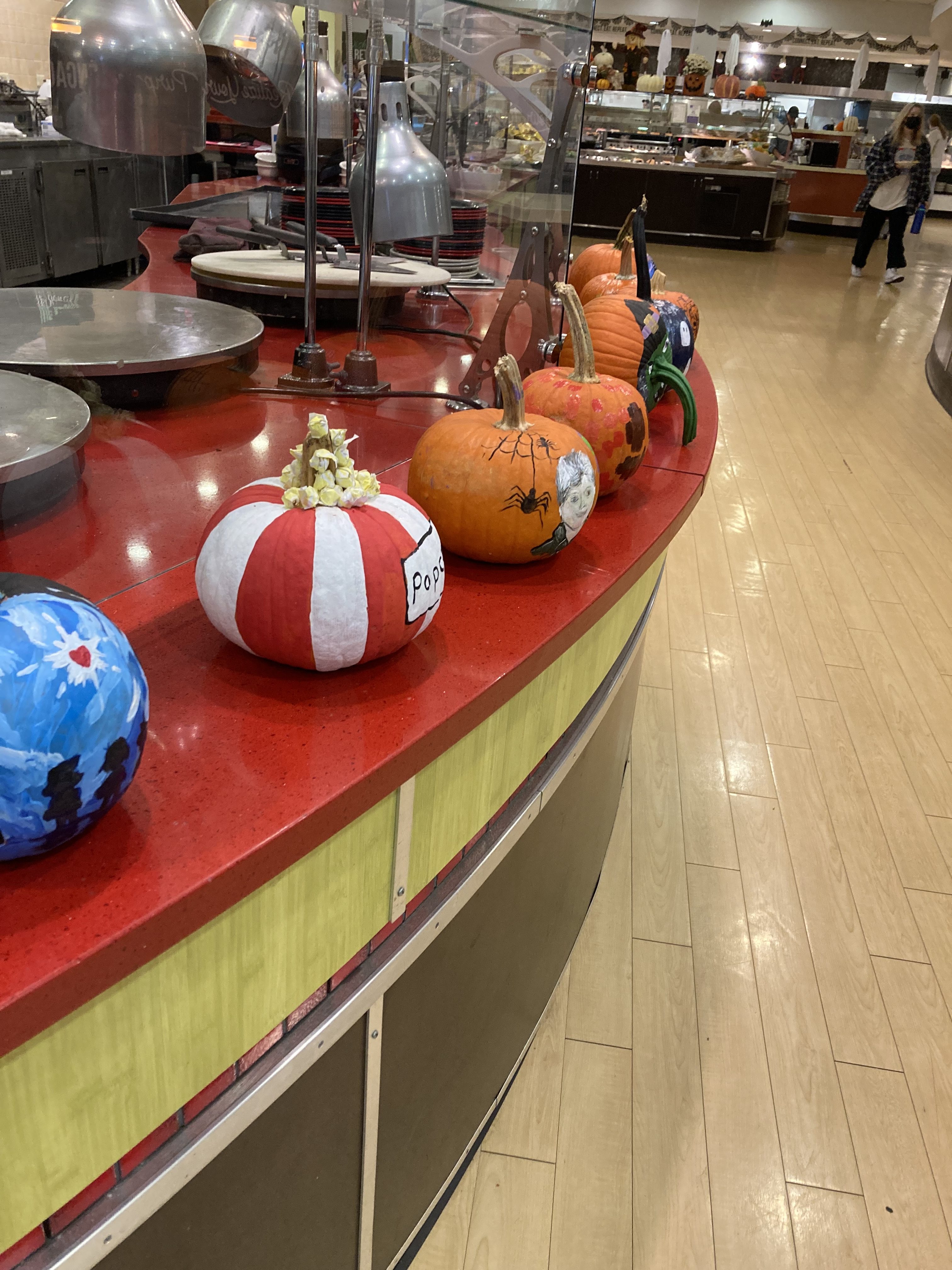 Happy Halloween! October is now over but I wanted to share some fun Marywood students got up to in the name of spooky season. The dining staff in Nazareth provided pumpkins to students for a pumpkin carving and painting contest, and Marywood’s students did not disappoint. Tons of amazing designs were brought in ranging from scary, toothy jack ‘o lanterns to creative painted Stitch pumpkins.