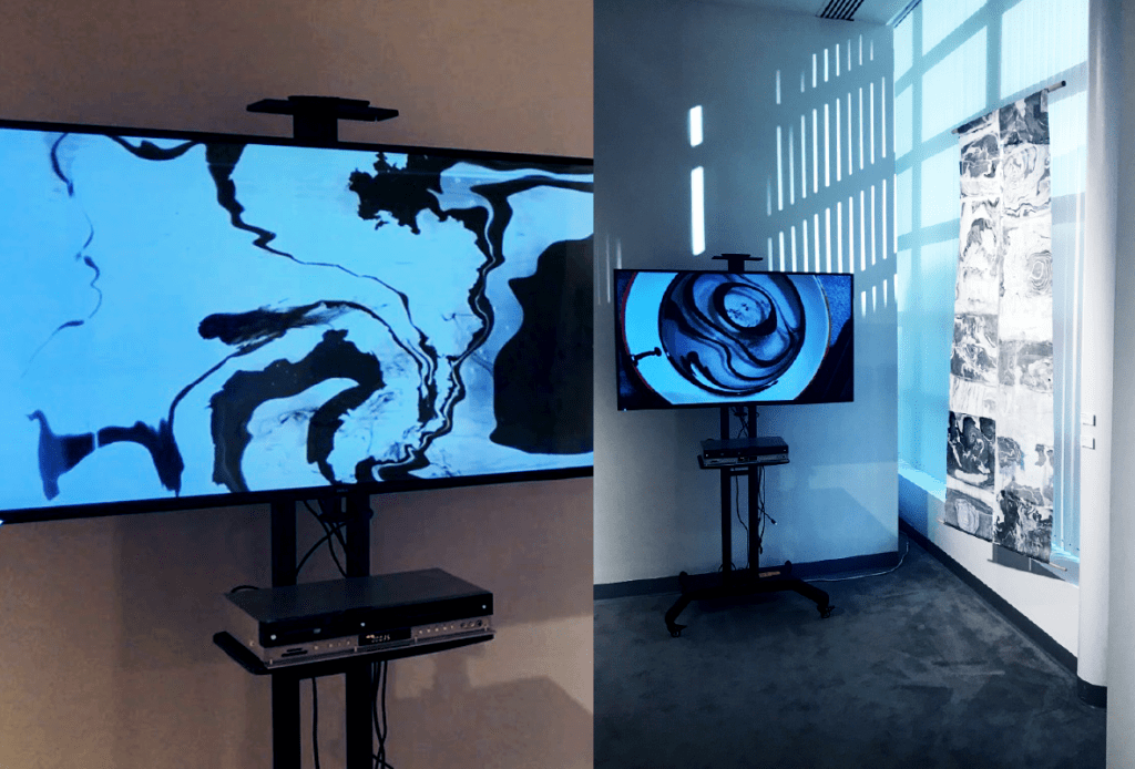 In fall of 2018, I explored my own individual responses to working with the process. I created a video of the Suminagashi process as well as rice paper panels that were showcased in the Biennial Faculty Art Exhibition at Marywood University. These pieces were titled Tolerating Ambiguity and Embracing Ambiguity.