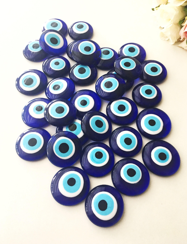 The form of evil eye protection we are most familiar with nowadays, the blue and white concentric circles, has cross-cultural origins in the Middle East and Mediterranean countries. A common form of this symbol is a Nazar, an amulet often lined with gold deriving its name from the Arabic word for sight/attention. It is also often in the form of beads, which are the influence of Turkish boncuk, glass beads that have most likely carried through the culture for centuries. The hamsa is also a popular variation, a symbol shared by Judaism and Islam.