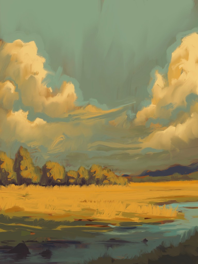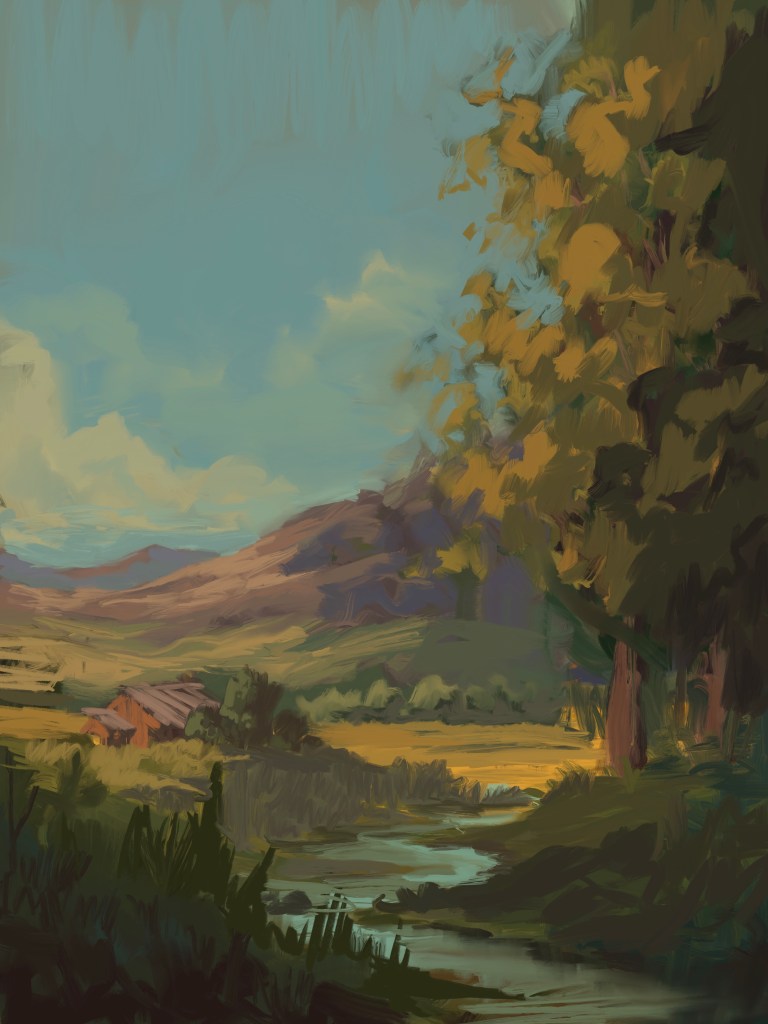 Recently I got commissioned for a large oil painting of a landscape. For the painting, I need to create a scene that includes a creek, field, and distant mountains. I am primarily taking a lot of inspiration from my surroundings in a rural region of New Jersey. I am also studying many different landscape artists that I look up to.