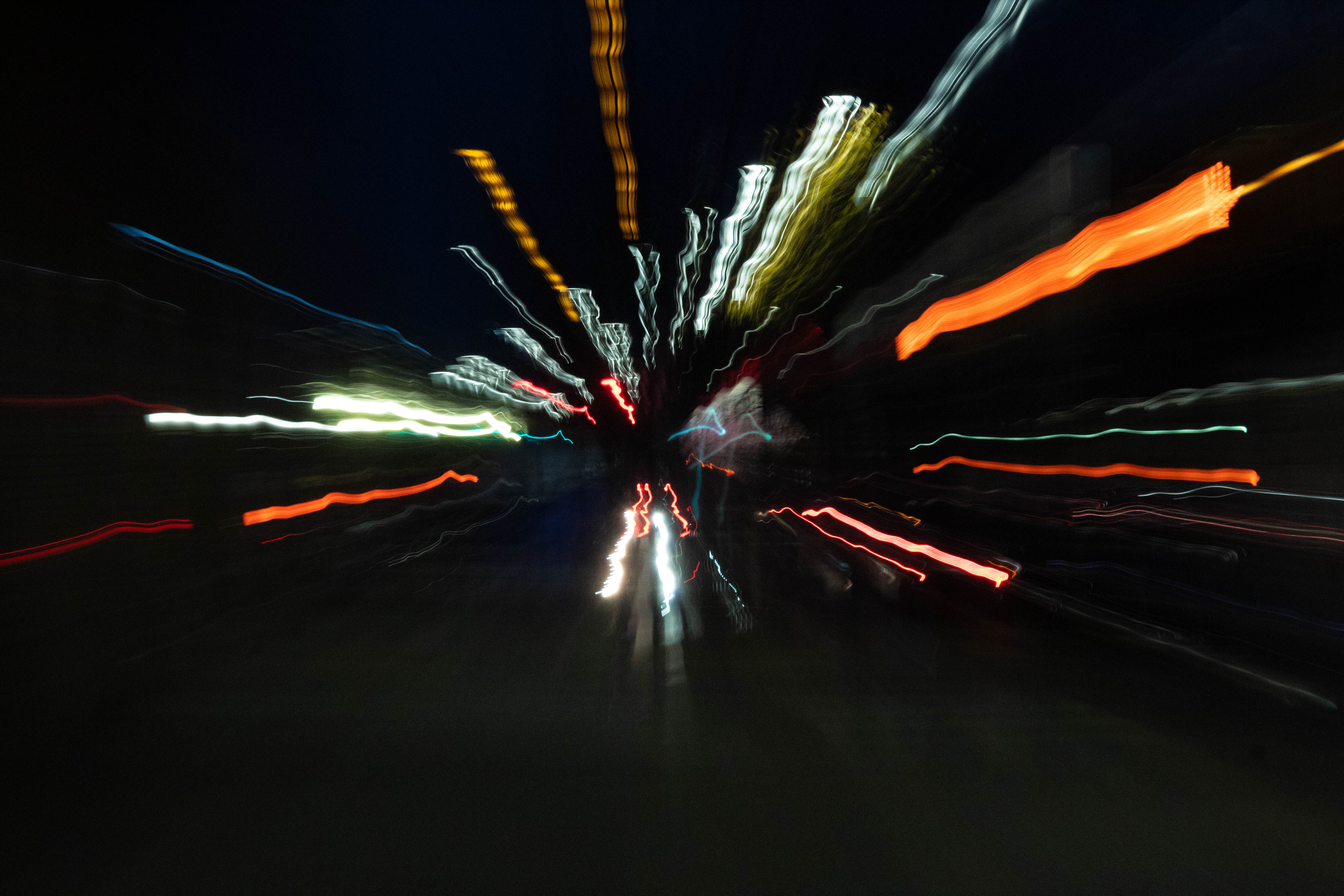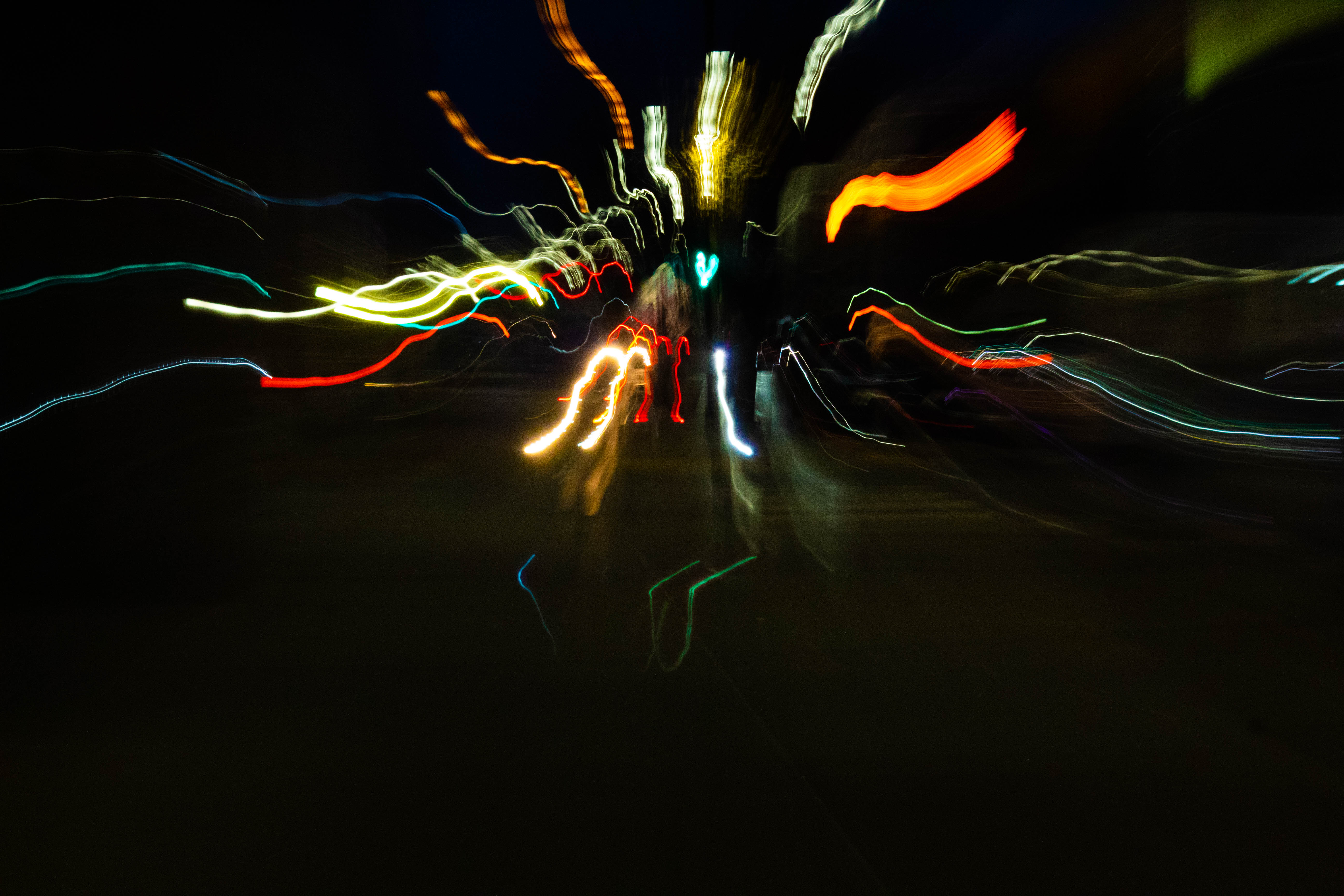 Another way to paint with light is by zooming your camera in and out while aimed at a light source of your choosing. This creates a great sense of motion as you can visually see the zoom, and it feels like a image out of star wars, traveling through hyperspace. For these images I used a shorter shutter speed than the last, and it was usually around a half second to two seconds. This still allows for the light painting to happen, but reduces camera shake in the absence of a tripod. I took these images in downtown scranton using various street lights, cars, and other ambient light from buildings.