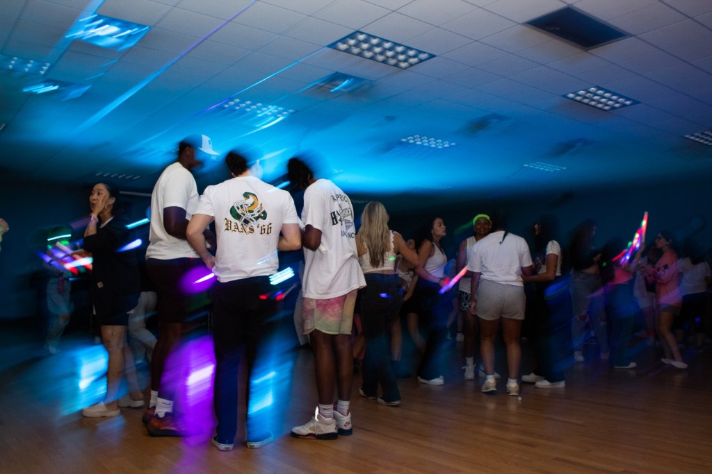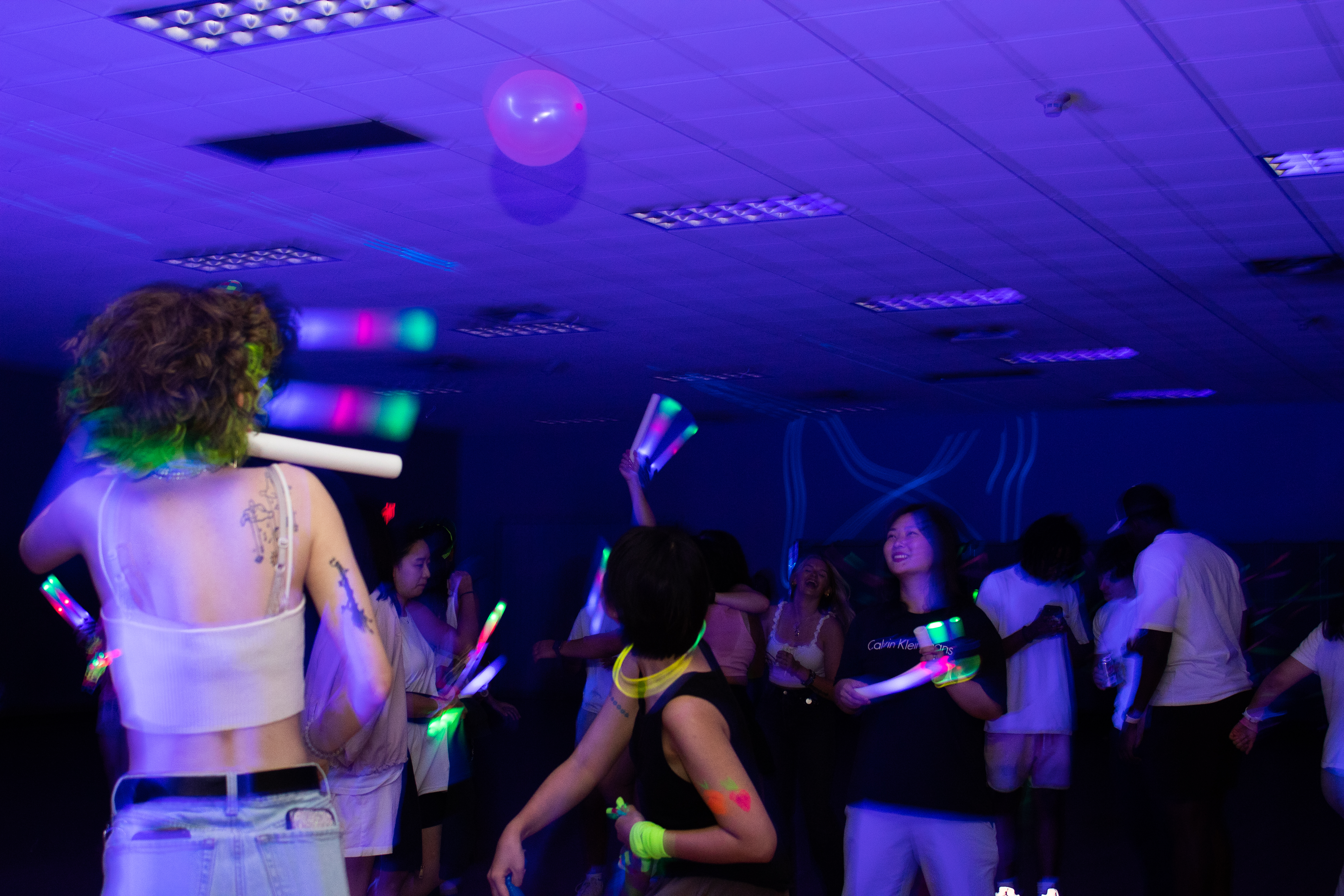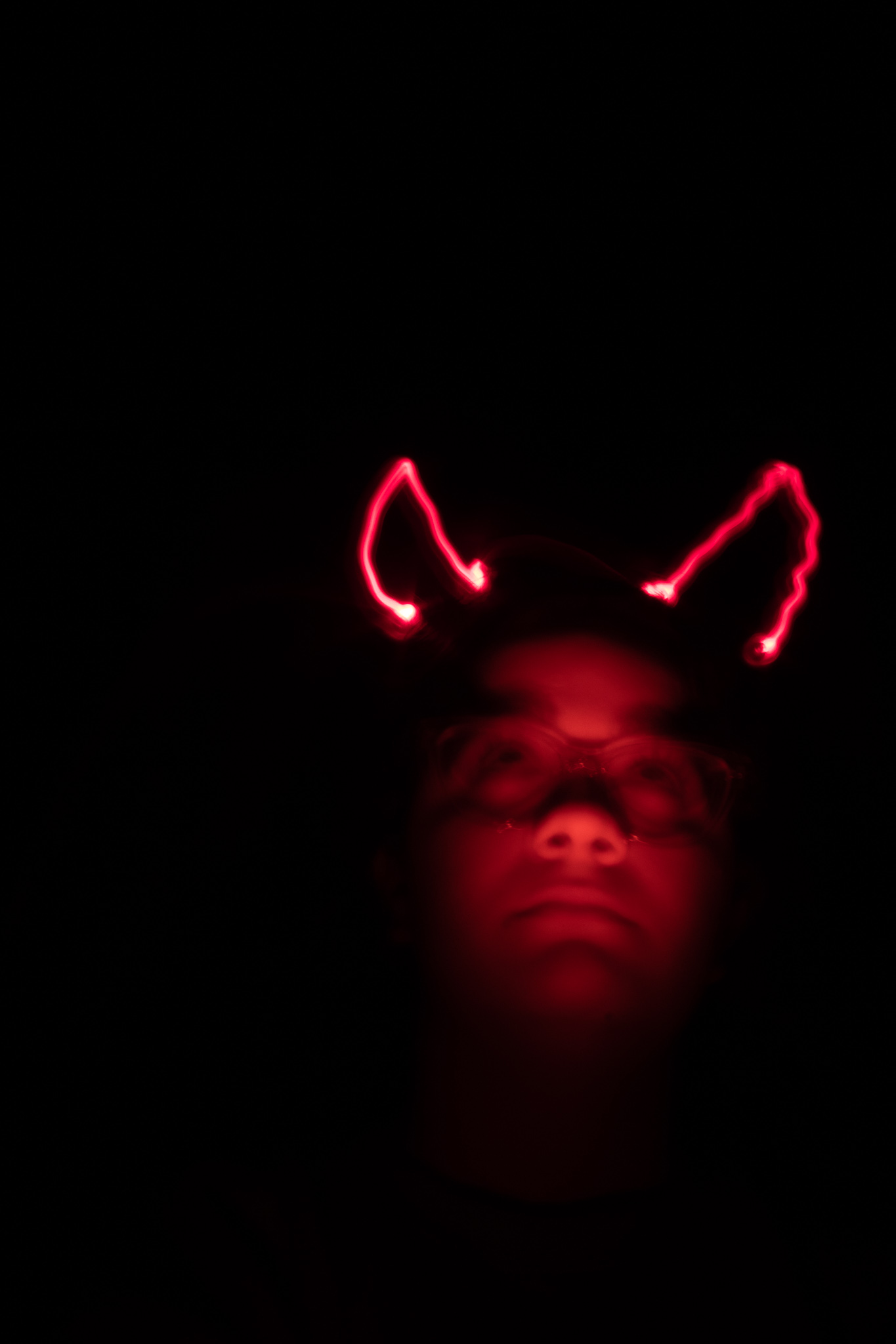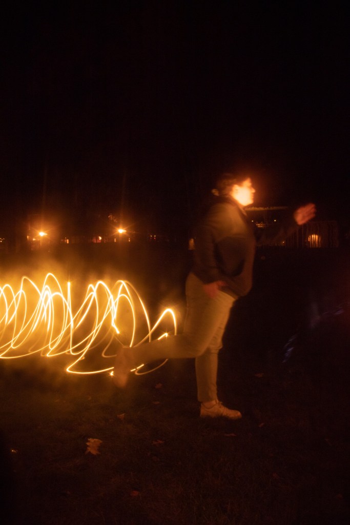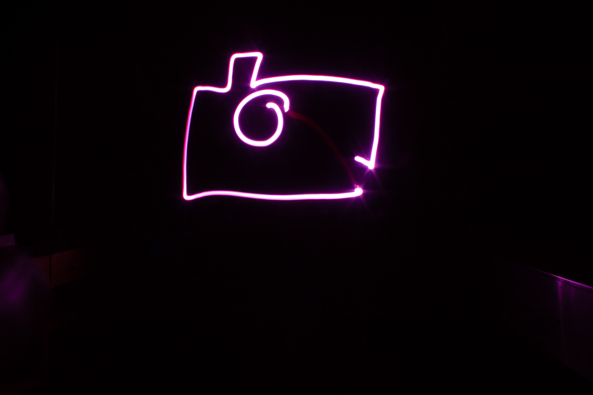When taking these type of light painting photos I set my camera up on a tripod, and set my shutter speed to around 5-7 seconds. Then I had shutterbugs members take their turns standing in front of the camera and painting with their flashlights, creating whatever they wanted. Some chose to have a subject be in the light painting, which created some really fun shots! The subject has to remain very still which can be hard, so make sure to pick someone who has good balance!