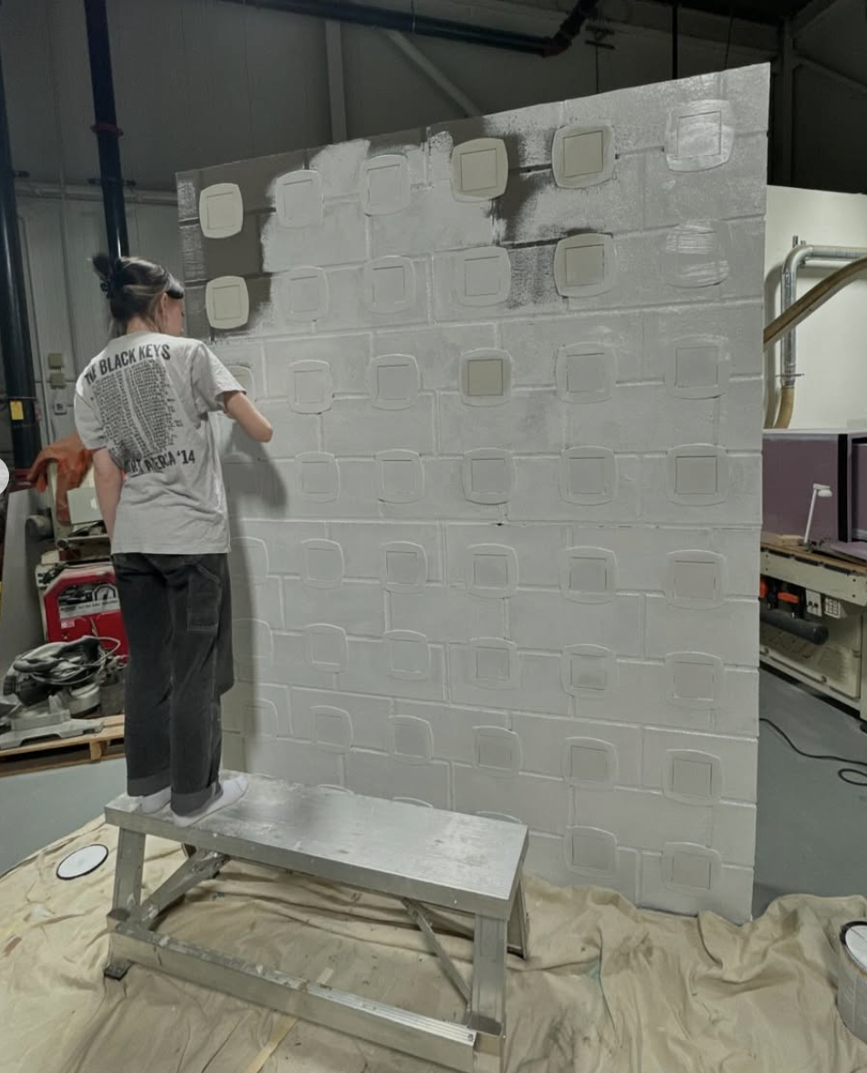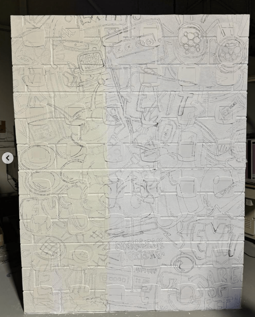 After a few weeks, I got an email from the enthusiastic engineer that the wall had been completed and it was up and running! He decided to go with a faux-cinderblock front to bring a bit more texture and concealment to the light fixtures. While I agree with his decision there, it did provide another challenge for me, painting on a heavily textured wall instead of something flat and smooth. In addition to that, I was facing some other concerns on my end, the biggest worry being I only had one week to get it painted and finished on top of my 9-5 job.