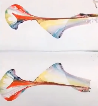 I saw this video on Facebook of people soaking string in different mediums, placing it on top of a piece of paper within a notebook, then closing it and pressing down on it while pulling the screen out. During one part of this video, someone even uses this technique on a pair of jeans. Although I don’t know the name for this kind of art, it is a very unique and abstract technique.