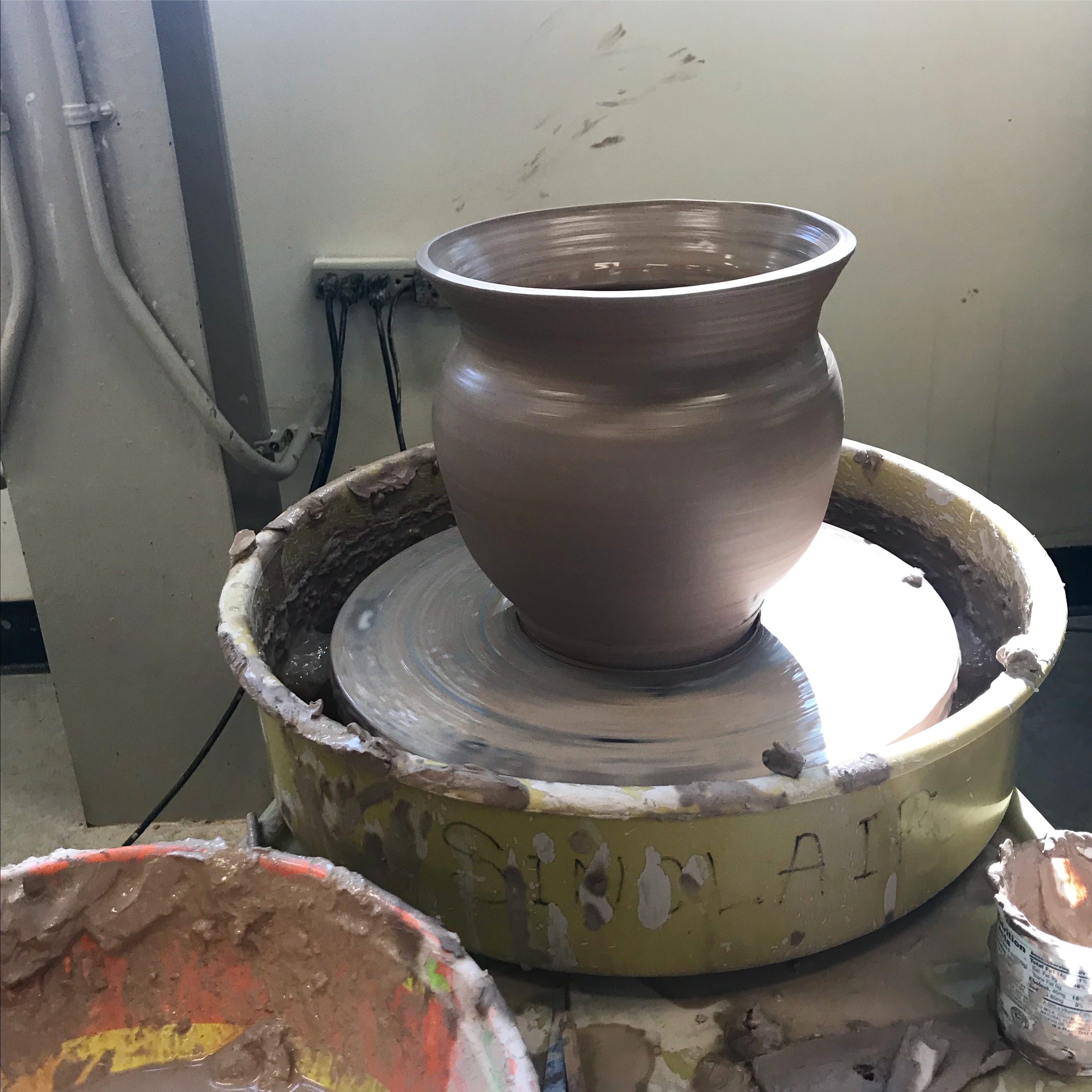 The semester is almost officially over, and so is my time here at Marywood (tears). With that being said, I don’t have any new work to show you, but I found a piece I made this semester that seemed to get lost in the shadows! This is the largest pot I have ever thrown, and I was able to get it so large my throwing it into two different pieces- a composite pot! I used maybe eight pounds of clay to make this- throwing only four at a time. Unfortunately this semester I got so caught up in other projects I didn’t have the chance to continue pursuing large forms.