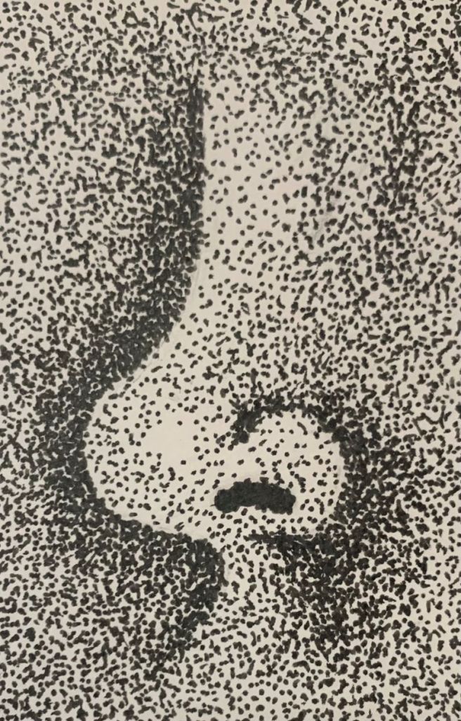 There are a few things that I have learned while stippling these facial features. For one, it takes a significant amount of patience to create a drawing with just little dots. By drawing only these three features, it took me roughly three hours to complete. Keep in mind the fact that these three pieces are on an eight by eleven piece of drawing paper, so they’re not very big in size. Secondly, during the drawing process I had to take just a few breaks because looking at all of the little dots together made me start to think it was an illusion. I then realized that stippling is very similar if not the exact technique for some optical illusion and color blindness eye tests. I found this to be a very interesting aspect of drawing.