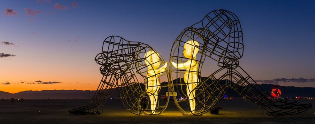 “Love” by Alexander Milov, is a remarkable installation with different interpretations, but each is easy to understand. The large scale of the sculpture aids in spreading its message, drawing massive attention wherever it goes. Even the materials used tells its story so clearly, that our inner feelings are trapped in the cage of our full selves. Excellent work from the artist to convey such a complex idea with such simple execution. Not a single aspect of this sculpture is wasted. (https://burningman.org/culture/history/brc-history/event-archives/2015-event-archive/2015-art-installations/)