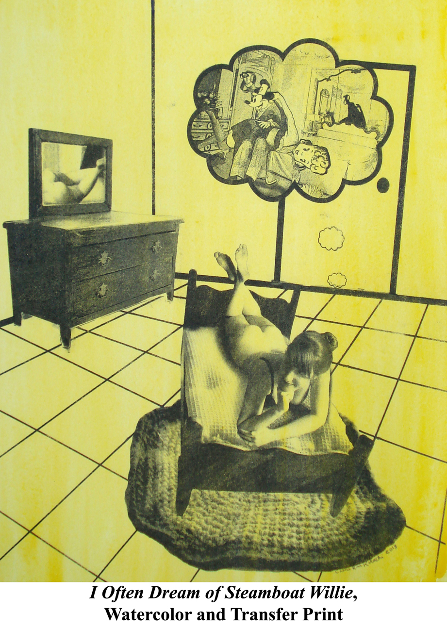 find a natural response that my work is often affected by my current circumstances and surroundings. Still trying to “make it work,” I don’t have the luxury of time on my hands to have limitless studio hours as I once did. I am now a teacher, a wife, and my busiest role, a mother. My most recent work reflects those changing circumstances by selecting a medium that can be more accessible to me at this present moment. I have been working with watercolors, Photoshop, photography, and found photos to compose into transfer prints. Three of these prints were selected and exhibited during the Northeast Biennial and I am in the process of expanding these works for future projects. While it doesn’t have the same tactility as sculpture or oil painting, I do love and appreciate the variety and multiplicity of printmaking.