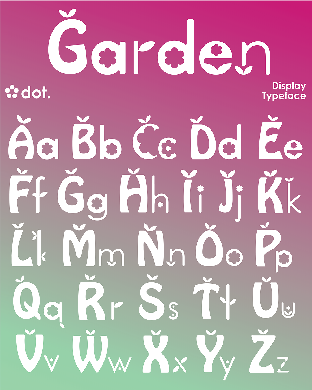 I started by sketching what I would want my typeface to look like. I knew I wanted it to have a garden theme and I wanted to lean into natural yet geometric elements. After my sketch, I figured out what assets I would need before I went into Illustrator. I started by grabbing a free plant svg from Google Icons that I can pull apart and use as my main elements. My uppercase type sketches looked exactly like Hobo Std Medium, so I knew I had a good starting point. I wanted my lowercase type to be clean yet rounded, and I knew searching fonts for hours to find the perfect one wouldn’t be beneficial, so I chose to use Century Gothic to heavily edit. It’s a pretty standard design rule to not alter type, but when you make your own typeface, you make your own rules.