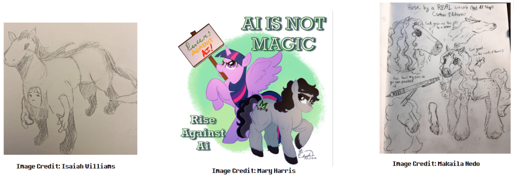 AI has become more and more prevalent in this modern day, while not inherently a bad thing as AI has many uses that can benefit the general public, not everyone uses it for the good of others. The poor use of AI is especially abundant in artist circles as their livelihoods and hobbies are replaced with a stolen product. As technology advances it gets harder and harder for those not in these circles to determine if a product is AI generated or not. Sometimes, even if the poster is forthcoming with their use of AI, the general public doesn’t care. This apathy only leads to more use of generators and more new artists questioning weather its worth pursuing art at all. Even if art holds no place in your life and reading is a chore, ask yourself: Would you rather have a homemade cake from someone who truly loves their craft or a cheap, stolen imitation?