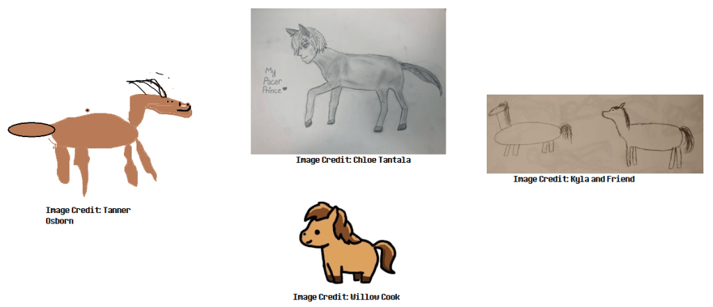 To help fight this I have reached out far and wide across campus and asked for any and all drawings of the pacer horse, they didn’t have to be “good” or 3D or anything in particular, except human made.