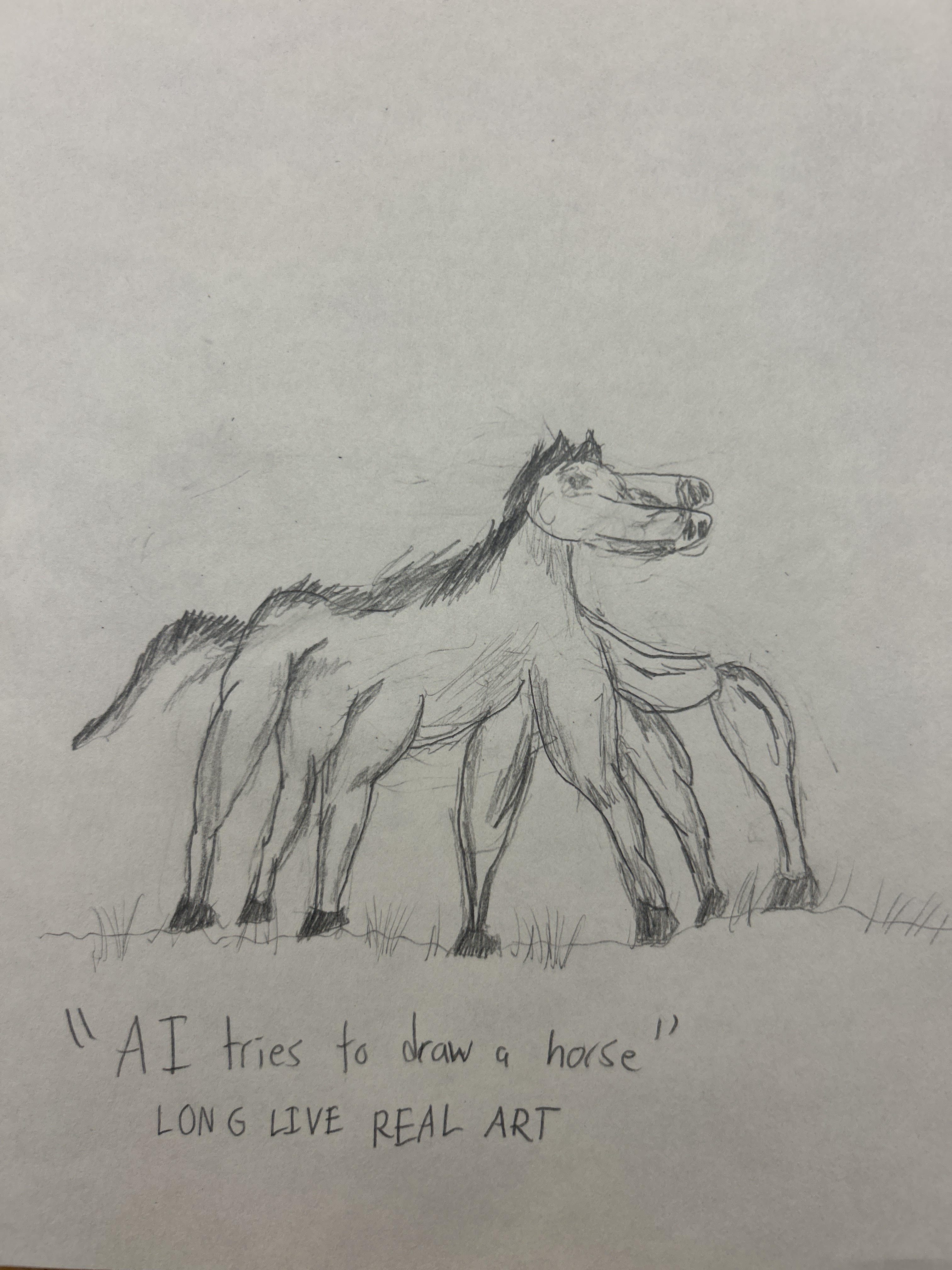 AI has become more and more prevalent in this modern day, while not inherently a bad thing as AI has many uses that can benefit the general public, not everyone uses it for the good of others. The poor use of AI is especially abundant in artist circles as their livelihoods and hobbies are replaced with a stolen product. As technology advances it gets harder and harder for those not in these circles to determine if a product is AI generated or not. Sometimes, even if the poster is forthcoming with their use of AI, the general public doesn’t care. This apathy only leads to more use of generators and more new artists questioning weather its worth pursuing art at all. Even if art holds no place in your life and reading is a chore, ask yourself: Would you rather have a homemade cake from someone who truly loves their craft or a cheap, stolen imitation?