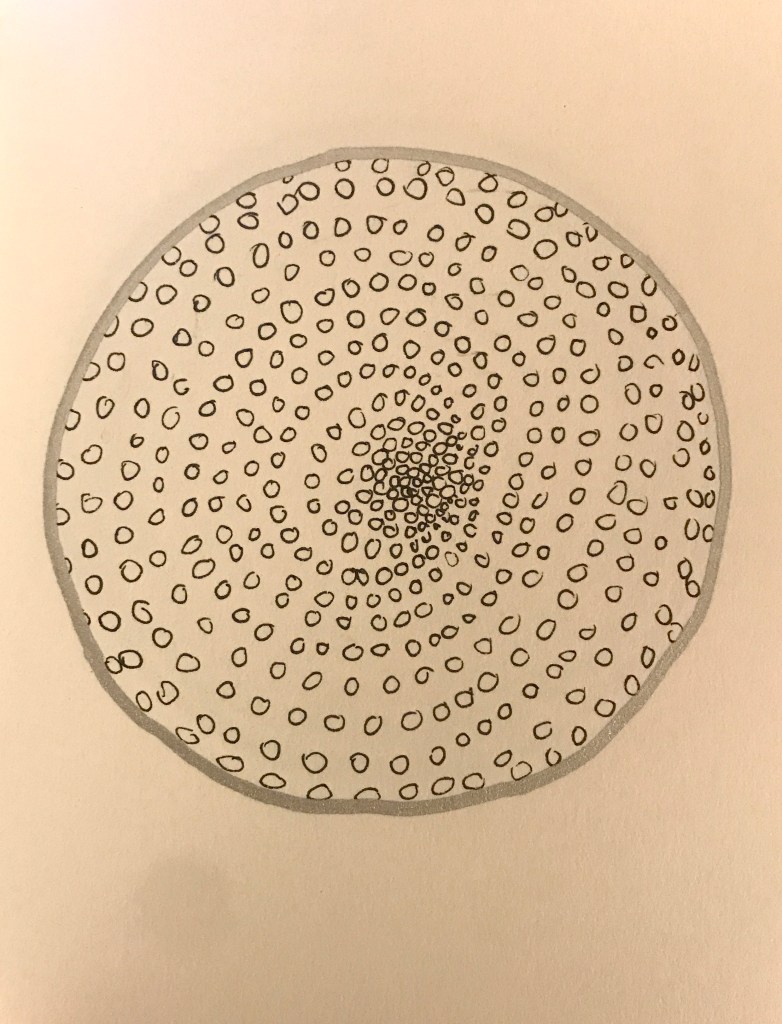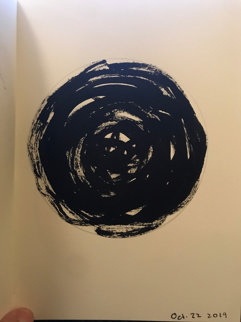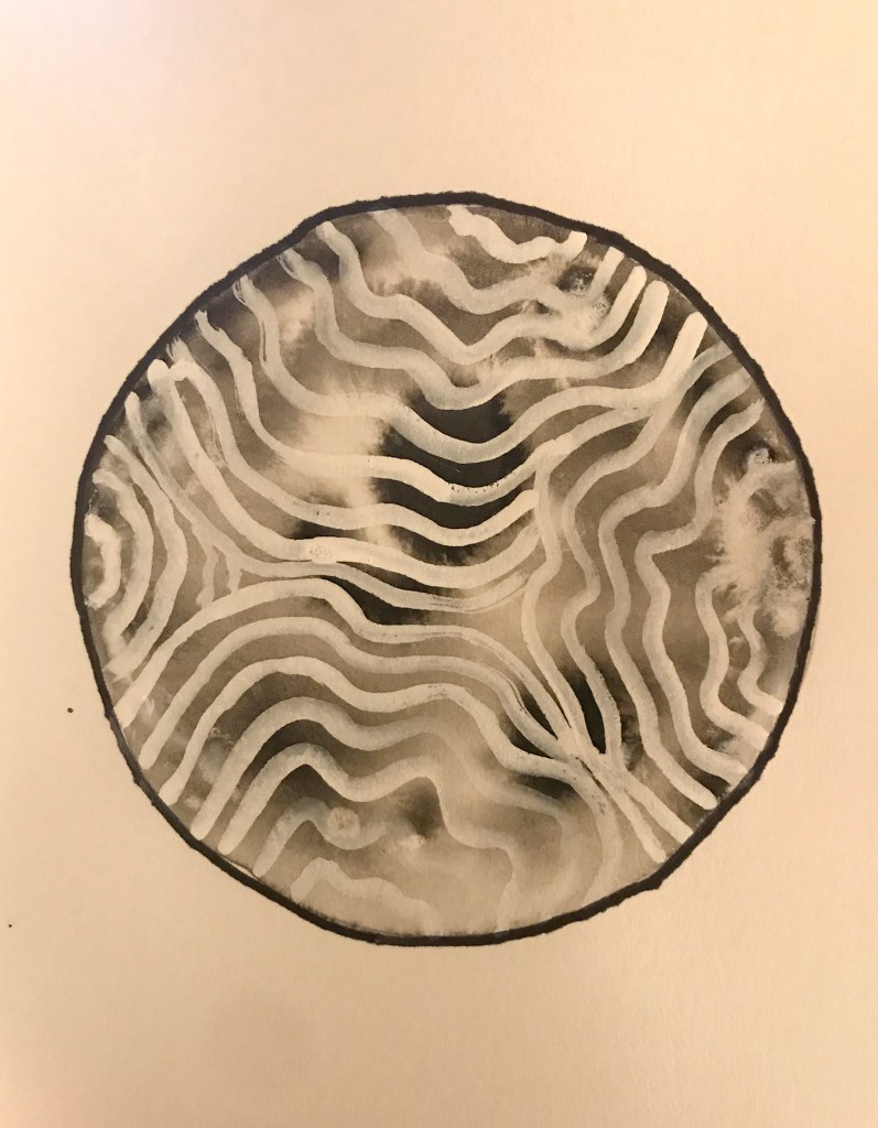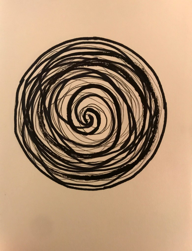 Throughout this project I picked up on symbols and designs I used frequently and related them to the emotions and events I was experiencing within my life. For example, I noticed that if I was experiencing a lot of anxiety regarding school or just general life, I would draw a bunch of tiny circles next to each other. If I was frustrated or worried about something, I would draw large spirals. On days when things went well I used a lot of free flow ink drawings or geometric designs. Using ink proved to be a really effective means of calming any stress I was experiencing, and allowed my to focus more on the present moment.