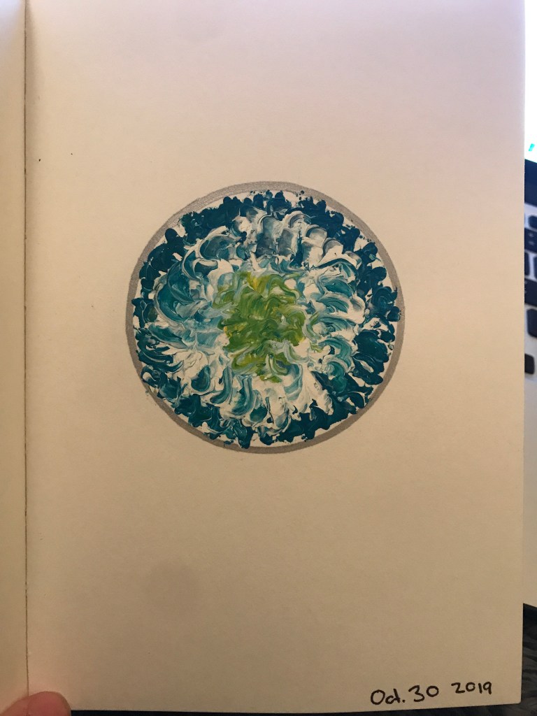As the month of October has come to an end, so has my mandala a day experience. What I’ve learned is that keeping a mandala journal is an effective, creative, and non-traditional style of keeping track of your daily life. At the beginning of the month, I was using my journal as a means of documenting my day as well as the emotions I had been feeling. As the month progressed, I noticed I was creating art as a means of releasing emotions and creating a mandala as a mindfulness exercise. I would set a time limit of about thirty minutes to create a mandala as well as relax and unwind in the process.