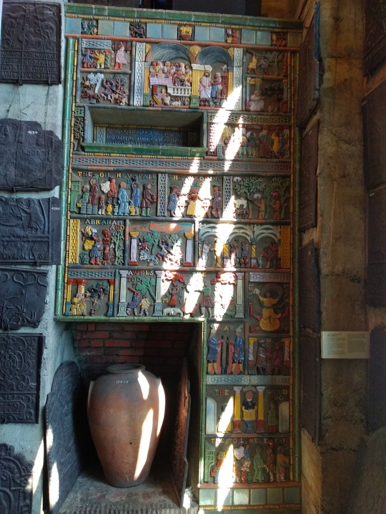 There’s seven floors to the Museum, which you can read a lot more about its history and Henry Mercer, the designer, on their website (https://www.mercermuseum.org/ ). This place was a really exciting find for me and I would really love to intern there. When you first walk in on Floor 1, it’s so overwhelming and there are objects EVERYWHERE…and I mean all over the floor and the walls and there are chairs hung from the ceiling! Henry Mercer was really focused on pre-Industrial America and the tools we made to make living easier. This museum contains shoemaking objects to presses to an irrigation system to a literal wagon mounted to the side of a wall.