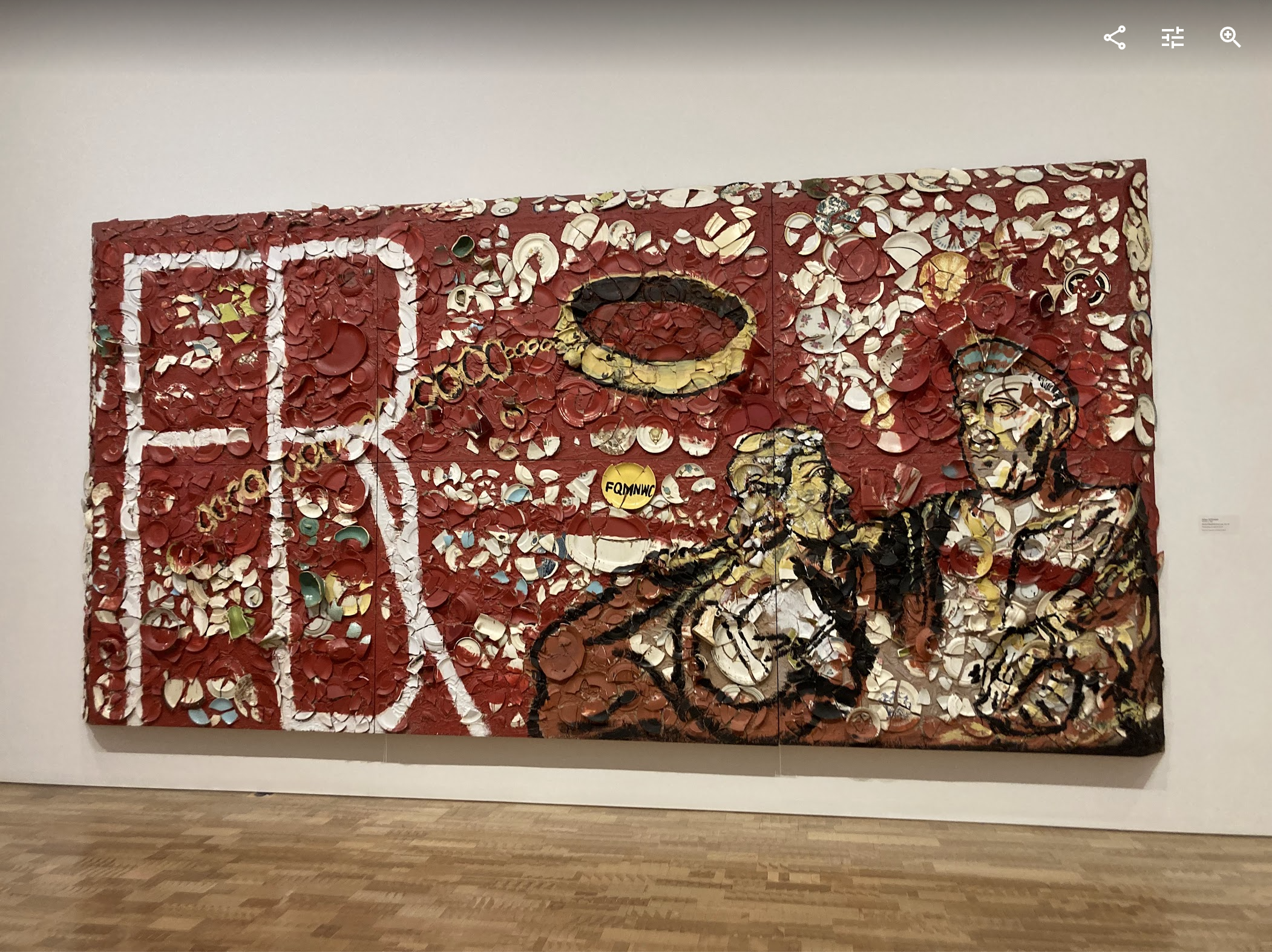 First thing that caught my attention once I got inside was a piece by Julian Schnabel. “Claudio al Mandrione (zona rosa)”. From a distance, it seemed to be a regular textured work, but as I got closer, I could see that this work is a collage. Hundreds of different ceramic objects, smashed, make up this interesting piece. I can only imagine the fun it must’ve been to create.