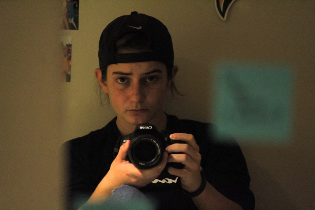 This was the mirror self portrait that started it all. One of my most important photos I’ve taken as it really fanned the flames of my desire to learn more about photography and eventually choose to focus on it in college and make it my career. It was one of my first photos I took with my then brand new camera (Canon EOS Rebel T6) way back in my sophomore year of highschool. I had no idea how it worked and it took about 30 tries in complete darkness to get this photo, but when I did I was ecstatic. While it may not actually feature my face or anything more than my hands, I still consider it a self portrait as it tells a story about me and was my way of documenting myself.