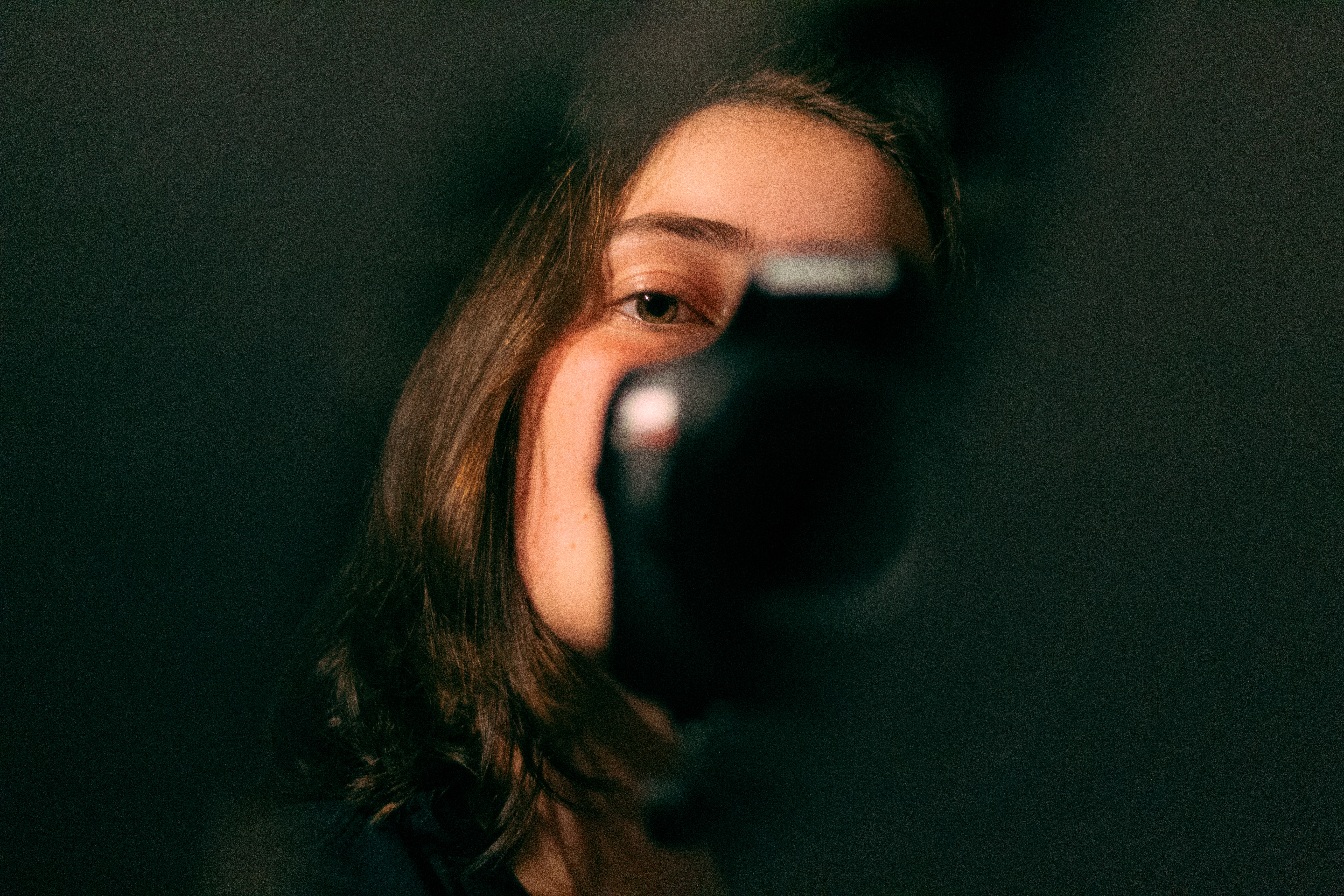 These studio mirror experiments were taken right before the start of my Portrait Photography class in the fall of 2022, (Art 331 with Professor Peter Nardone) and were taken with a shard of a mirror. When I took this class I was entering my second year of college and had started understanding not only my camera, but myself better as well. I had a lot of fun shooting these in the studio with just one light and a tripod and recently went back to re-edit them in a style that reflects my current skill level. I intentionally hid part of my face behind the camera in each photo to not only tell a story about myself for the viewer, but also to create some tension and suspense.