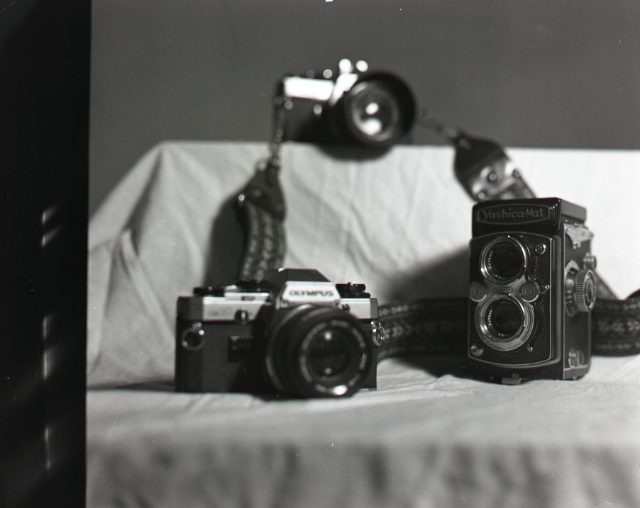 In last week’s post, I discussed using 35mm and 120mm film. For this week’s post, I’m going to discuss 4×5 film. We used two different kinds of 4×5 film cameras, a pinhole camera and a large format camera. I used the large format camera for my class assignment and I wanted to play around with studio lighting.