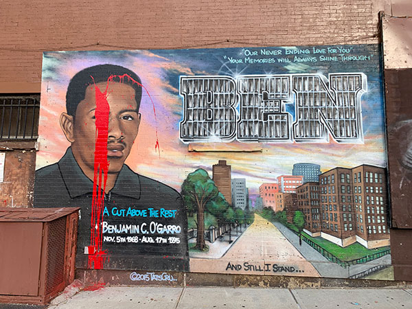 The final mural that I came across while visiting Brooklyn was actually one of several within the city, and so I struggled to find the artists name. This piece talks about the very important issue of gun violence. Benjamin C. O’Garro was a man killed through an act of gun violence. There are many different memorial murals throughout the city that bring light to him and the cases of gun control.