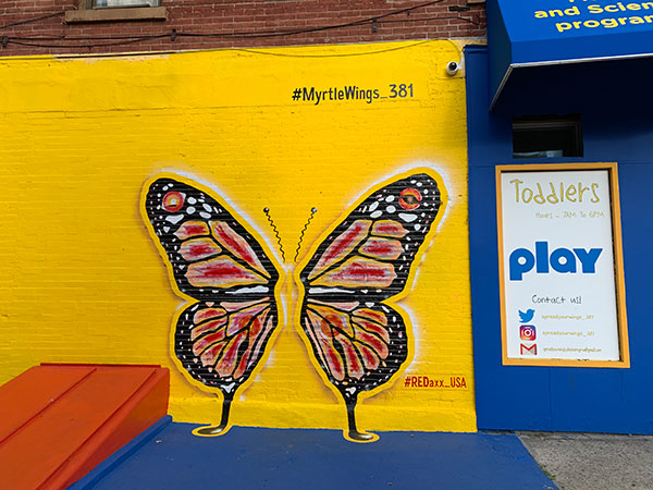 Open Your Wings is a child care center in Brooklyn with a focus on movement and art. This center has great murals of insect wings such as butterflies and dragonflies. Not only does it provide a fun experience for the children to interact with, but it also allows those passing by to interact as well. While promoting creativity, it also promotes interaction within the community.